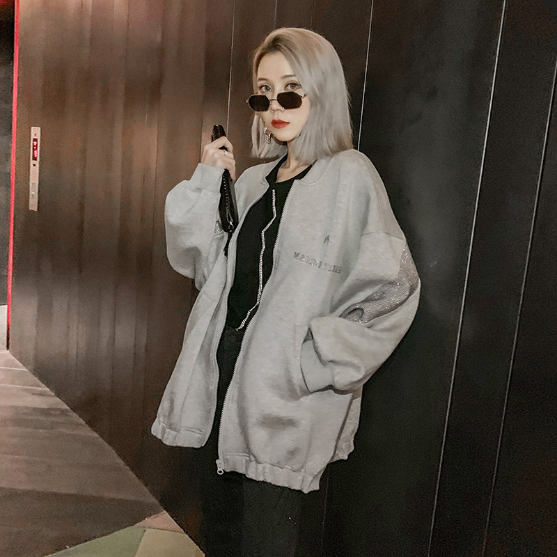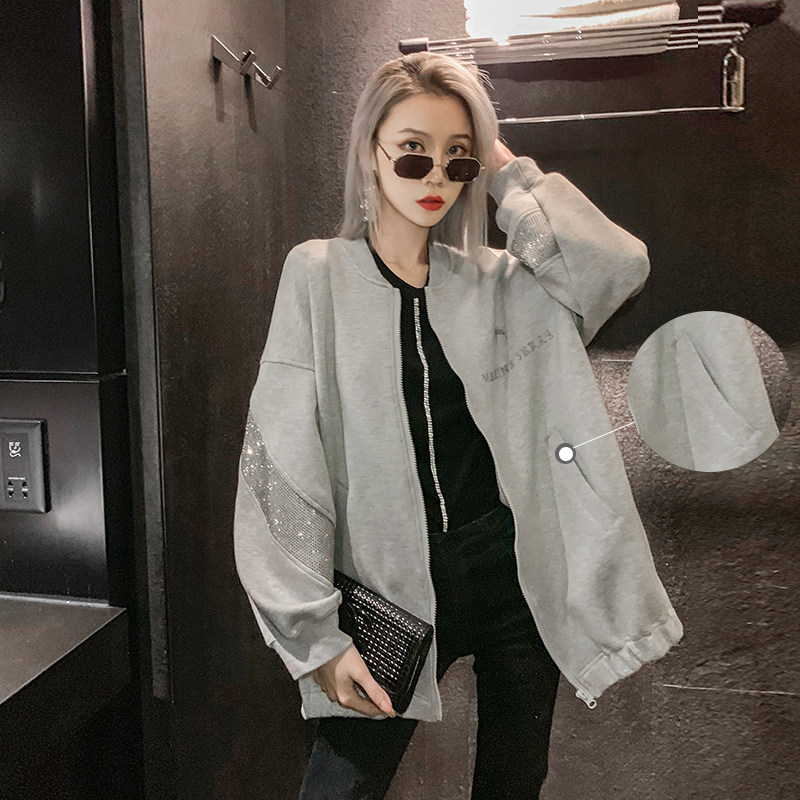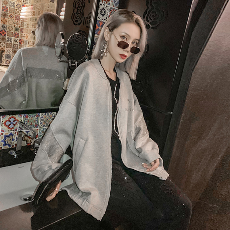 Baseball suit jacket women loose 2020 autumn new European station heavy industry hot diamond wild zipper casual jacket tide