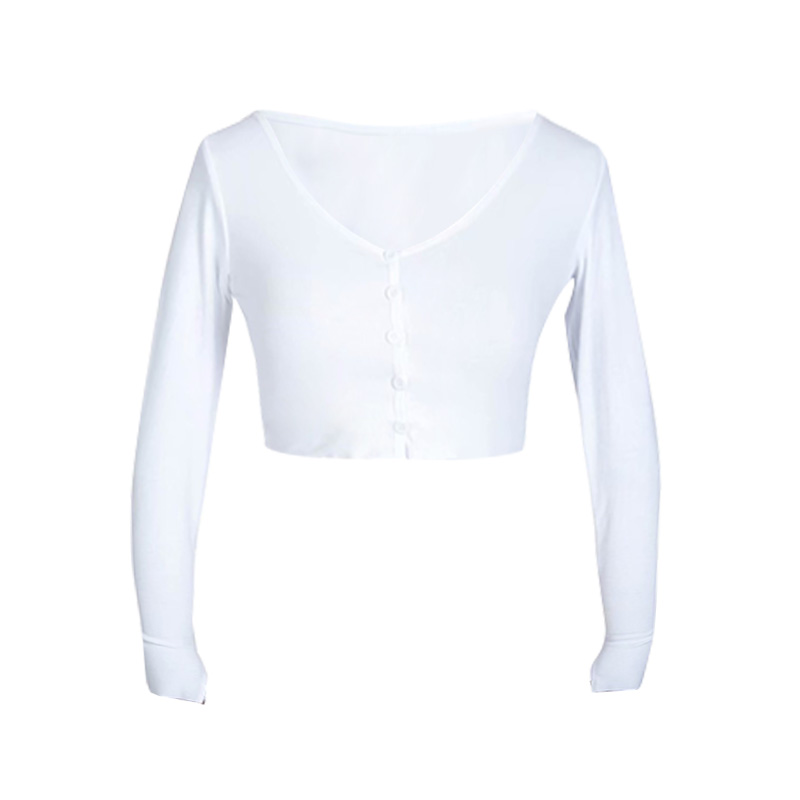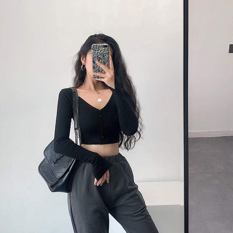 YoungGirlDay European and American style sexy V-neck single-breasted slim long-sleeved short cropped navel T-shirt top