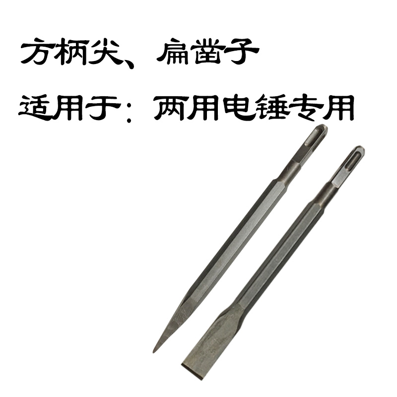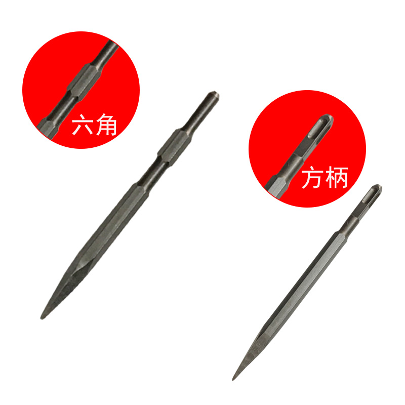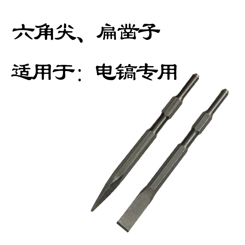 Rotary hammer drill Electric pick Chisel drill pick head Extended long hexagonal tip pick Flat pick Square handle tip chisel widened flat chisel pick drill