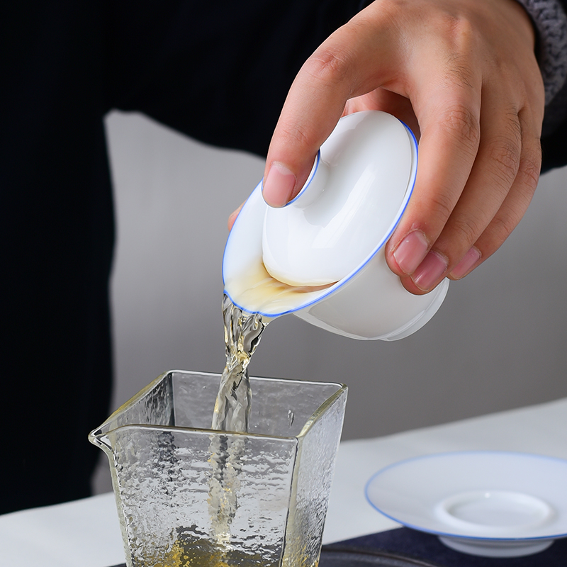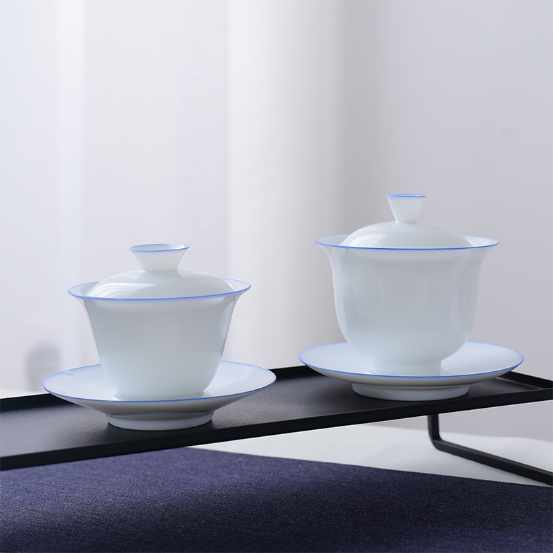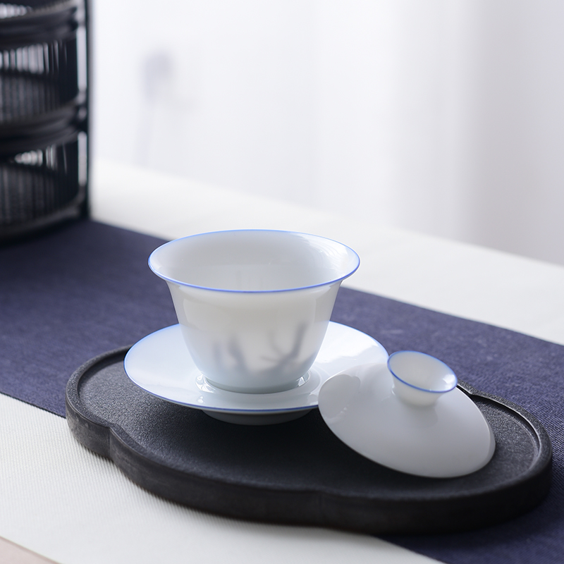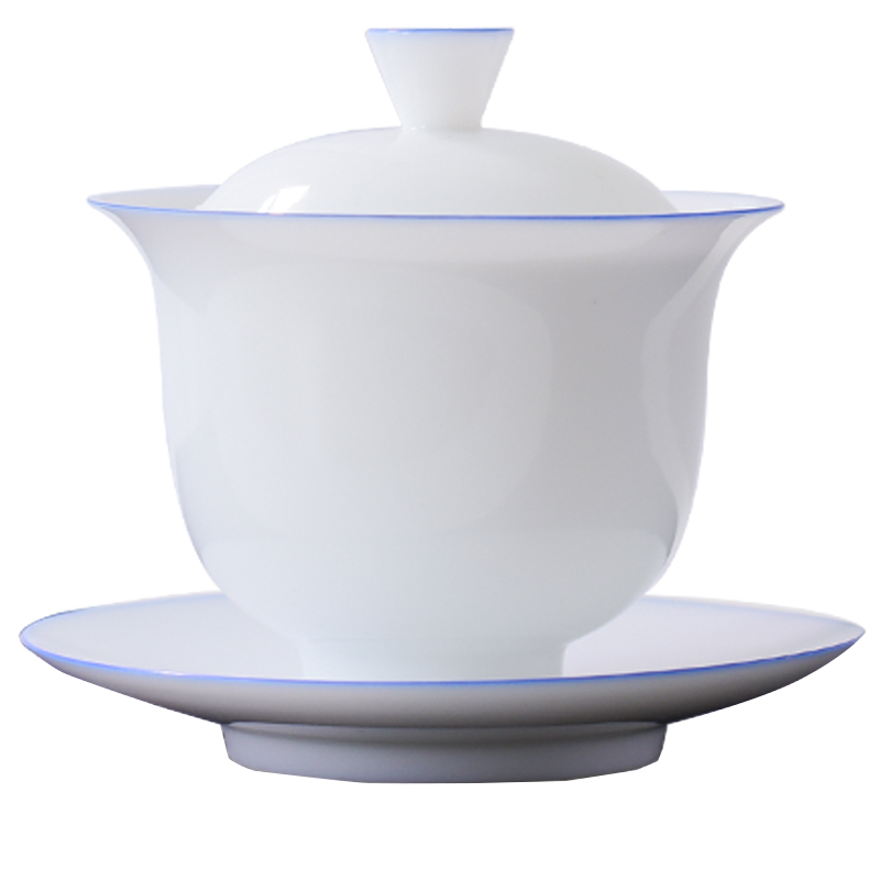 Jingdezhen Pure Handmade Three Talents Cover Bowl Tea Cup Ceramic Kung Fu Tea Set Thin Tire Sweet White Porcelain Large Number Home Bubble Tea Bowl