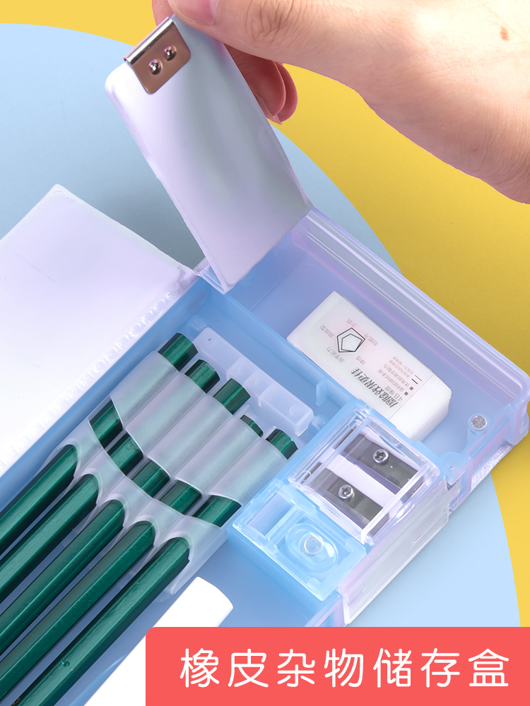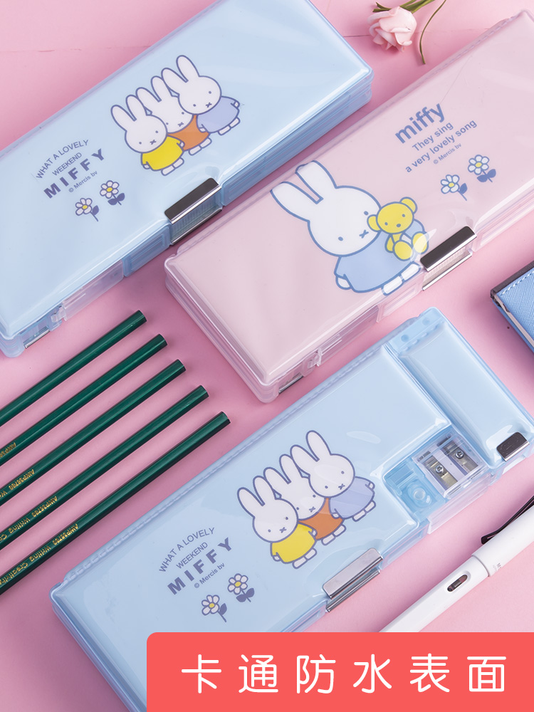 Morning light Mimi fei multi-functional stationery box boys double switch pencil box Korean version of girls simple pen box kindergarten children 1-3 grade cute cartoon large-capacity double-layer net red plastic box