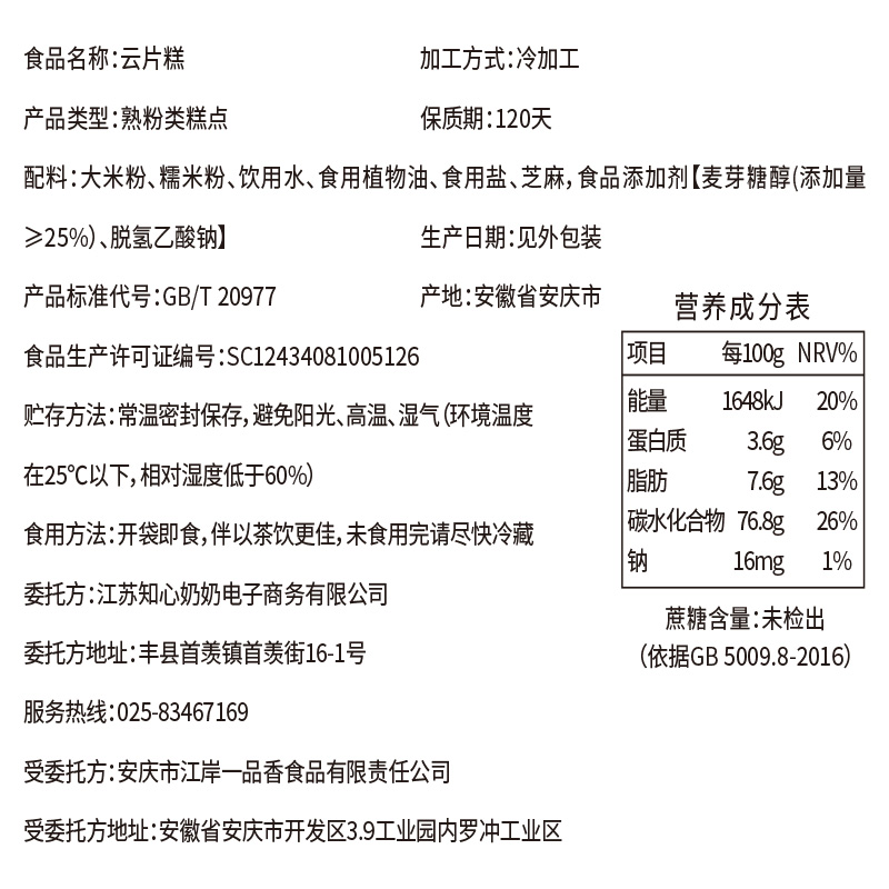 Know Mind Grandma No Sugar Fine Cloud Slice Special No Cane Sugar Zero Food Sugar Urine People Sugar Pee Pie Patients Flagship Store
