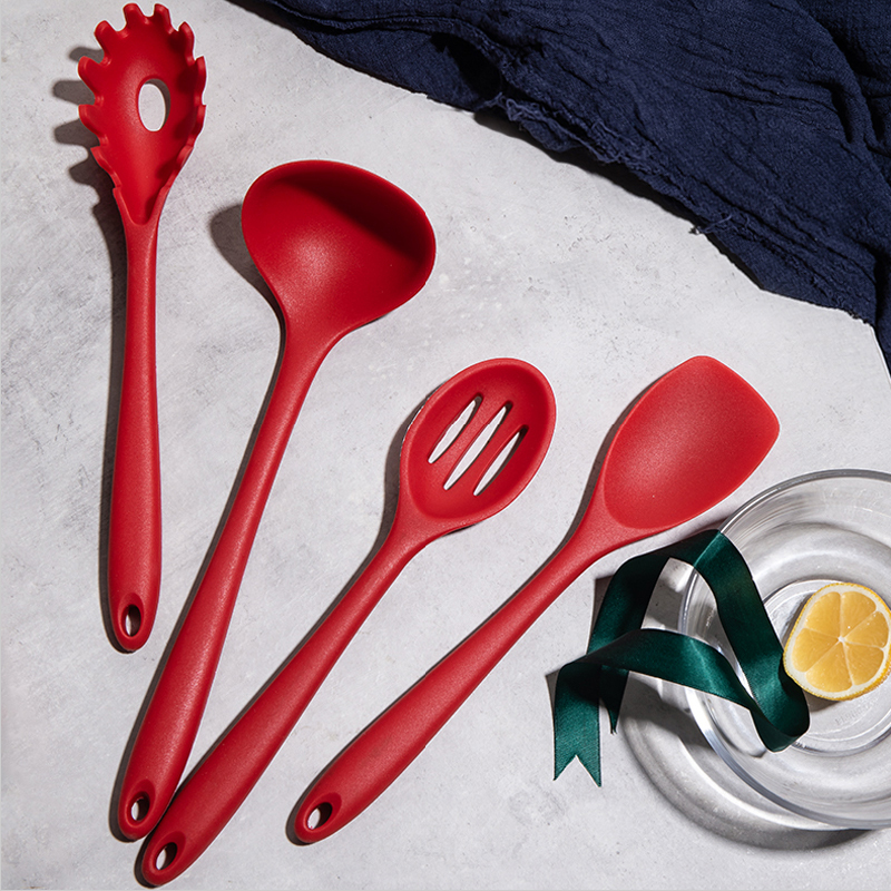Mofei multifunction pot tennis red cuisine pan special not to stick with high temperature resistant nylon silicone gel cookware set of 10 pieces