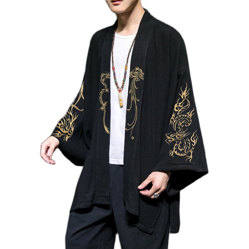 China Wind Men's Clothing Embroidered Cardiovert Youth Coat Hanfu Clothing Winewear Day Department Retro Don Dress Gowns and Wind and Chaos