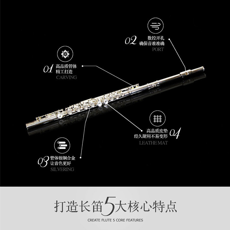Instrument flute silver-plated C key E key preliminary examination performance teaching Yamaha 16 hole EFL210SE