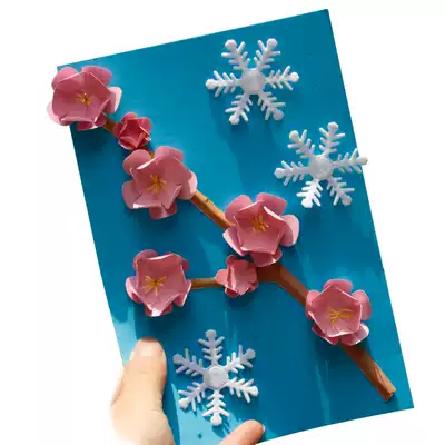 Spring Festival diy paper-cut greeting card three-dimensional plum blossom material package children New year handmade flower card Chinese style