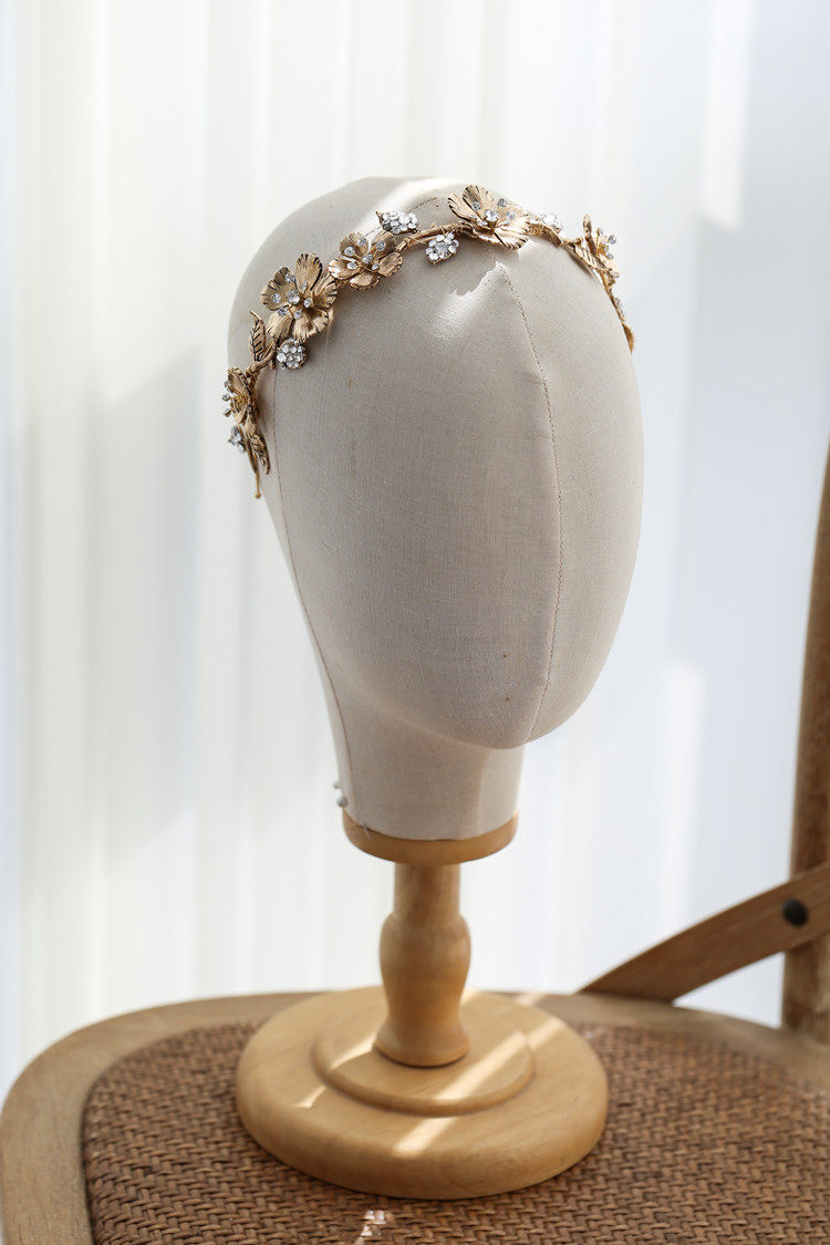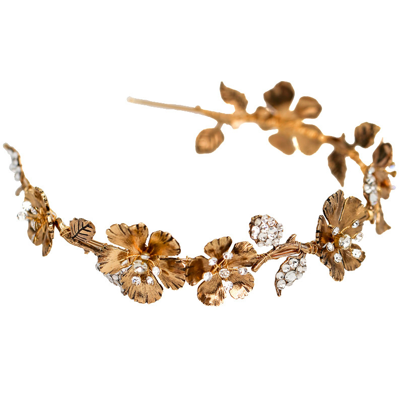 Korean Style Shine as old retro golden flowers rose leaf hair stirrup Exaggerated Eurostyle Style Hair Accessories Crown