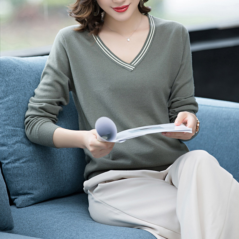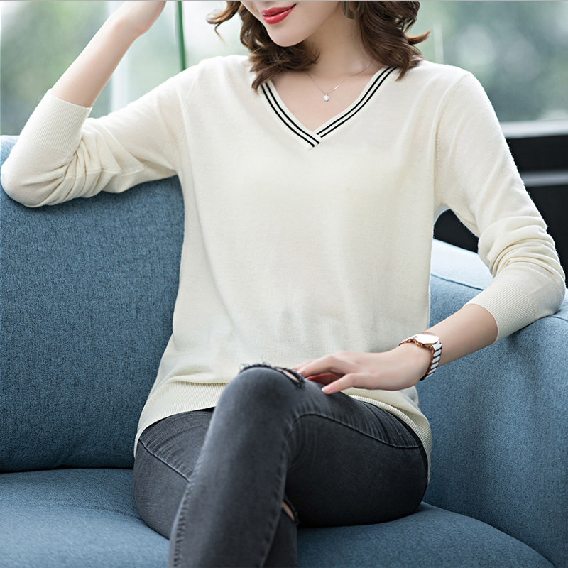 Spring and Autumn V-neck sweater women's knitted bottoming shirt 2022 new style with loose V-neck sweater thin top