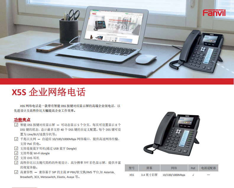 Fanvil azimuth X5S gigabit dual-screen business Internet phone SIP wired phone ip office phone