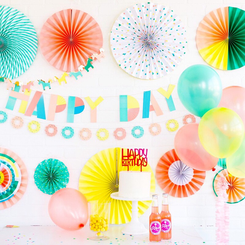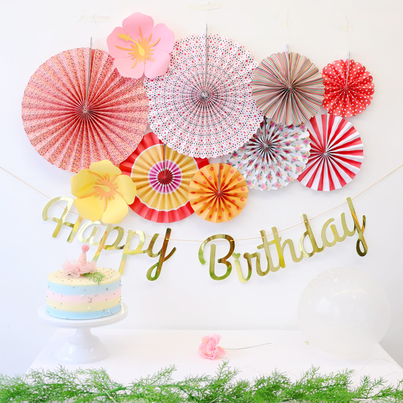 Children's Day window decoration Colorful dress up paper fan flower Birthday festival background wall atmosphere decoration charm
