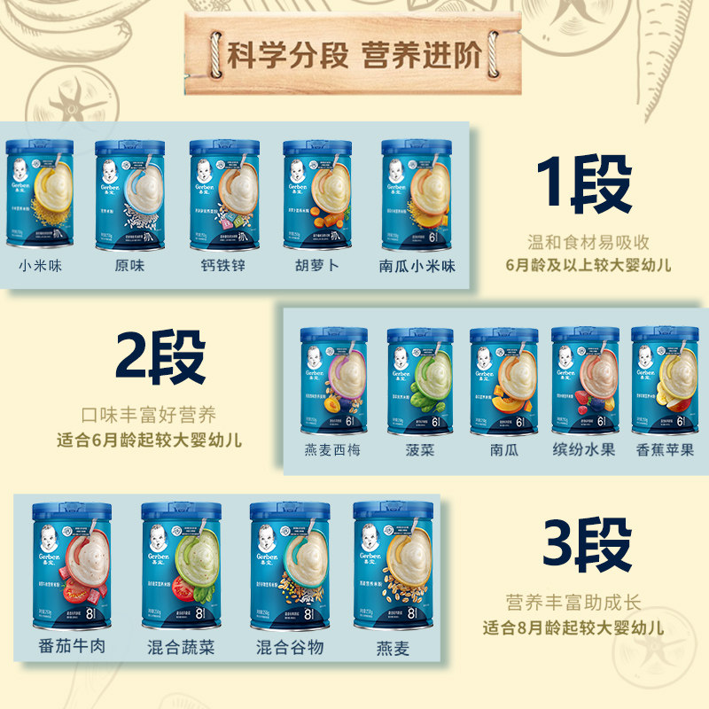 Take this self-message taste 1 paragraph pumpkin millet flavor (suitable for 6 months old) 1 section original flavor (suitable for 6 months old) 1 section of calcium, iron and zinc flavor (suitable for 6 months old) 1 section of carrot flavor
