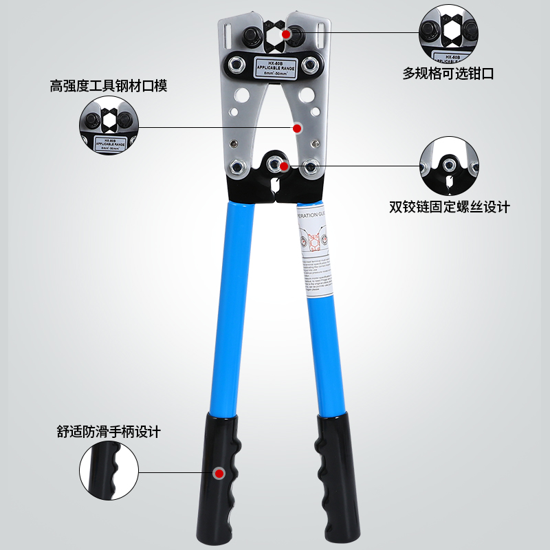 Large YO bare terminal crimping pliers manual cold-pressing terminal pliers copper-aluminum nose cable crimping pliers vigorous pliers tube pliers
