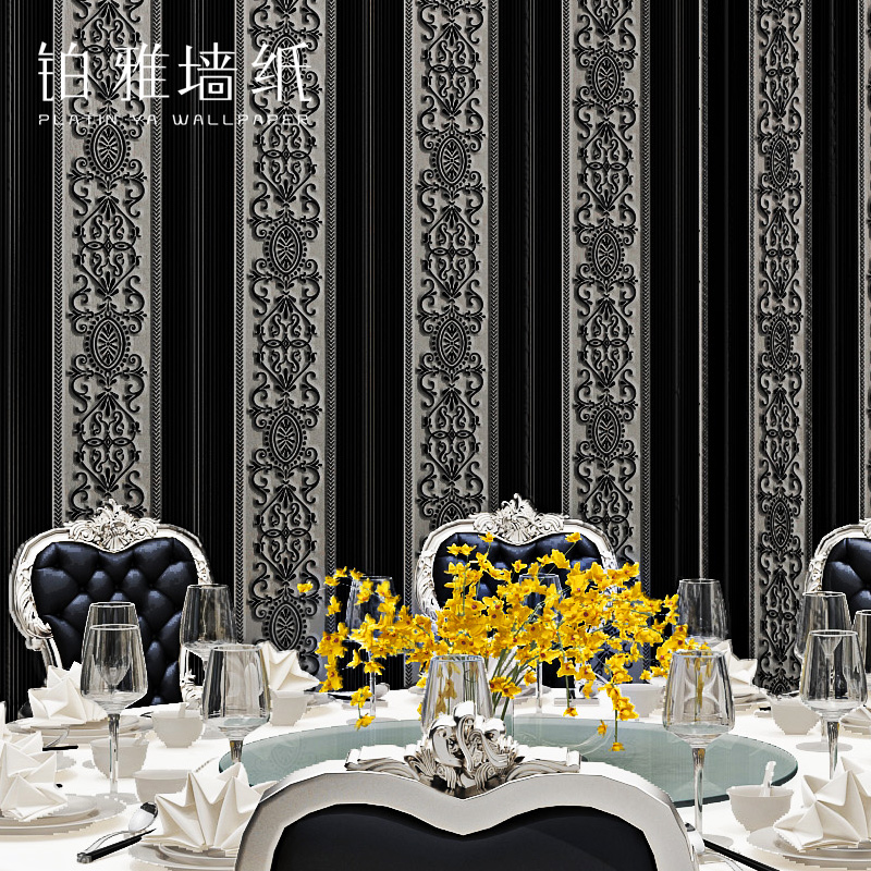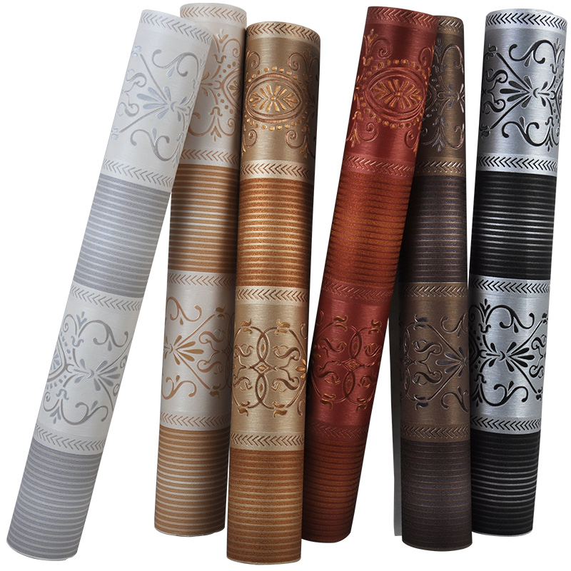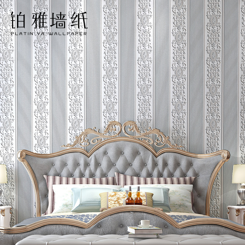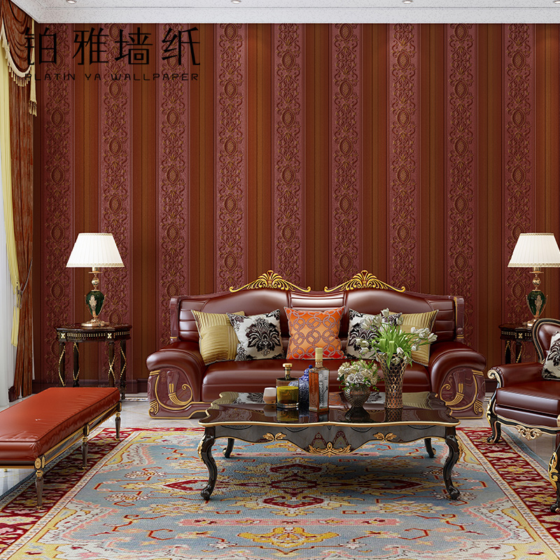 3D three-dimensional fine pressure European stripe wallpaper vertical bedroom background wall living room wallpaper household luxury golden red
