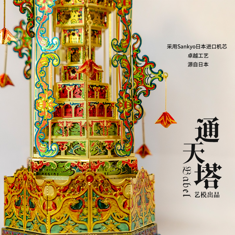 Art Model 3D Metal Stereo Babel Tower Assembled Music Box Model Adult Toys Bedroom Decorations Handmade Gifts