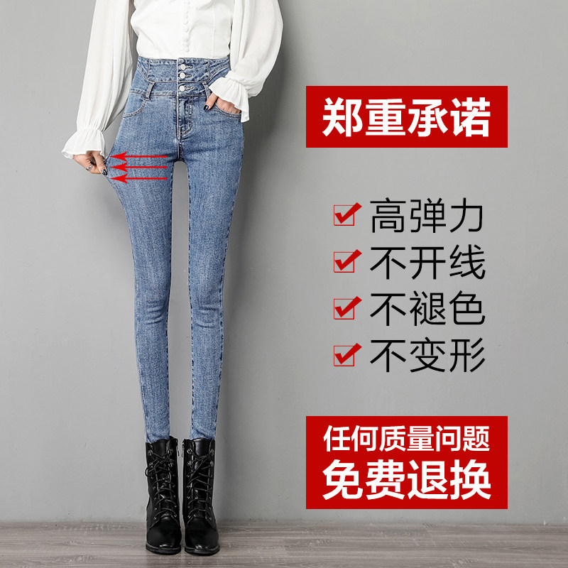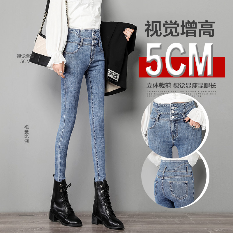 Light blue jeans women's cigarette tube pants slim slim autumn 2021 new high-waisted pants tight pencil pants
