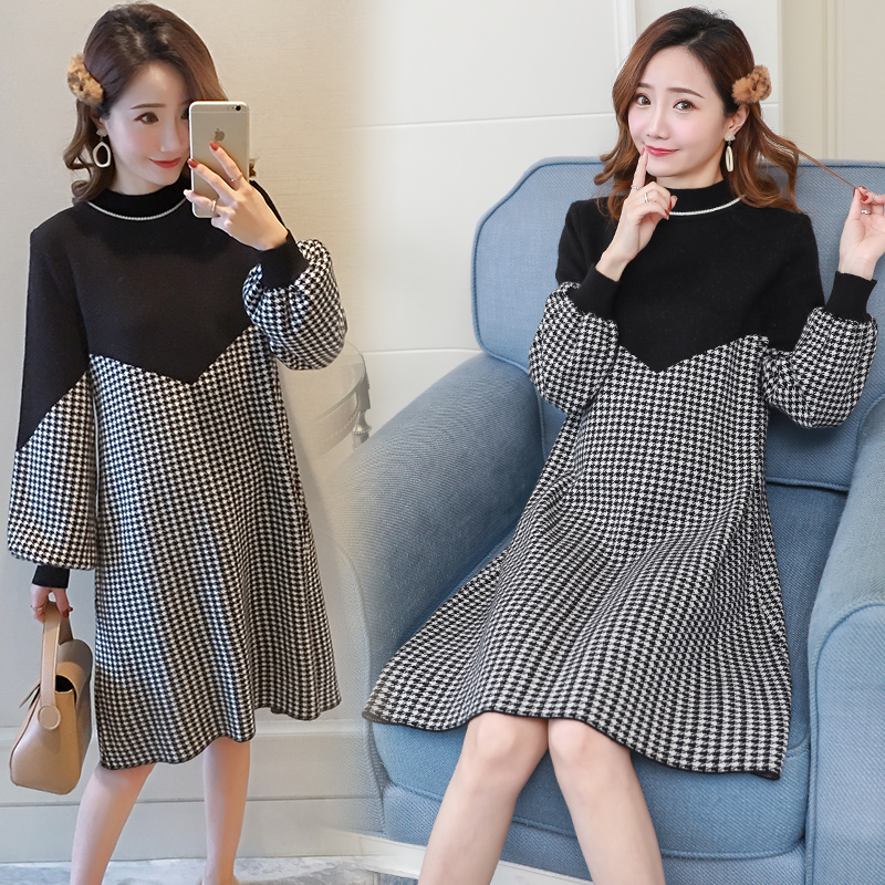 Pregnant women spring suit fashion 2022 new spring and autumn round neck out long two-piece dress tide mom