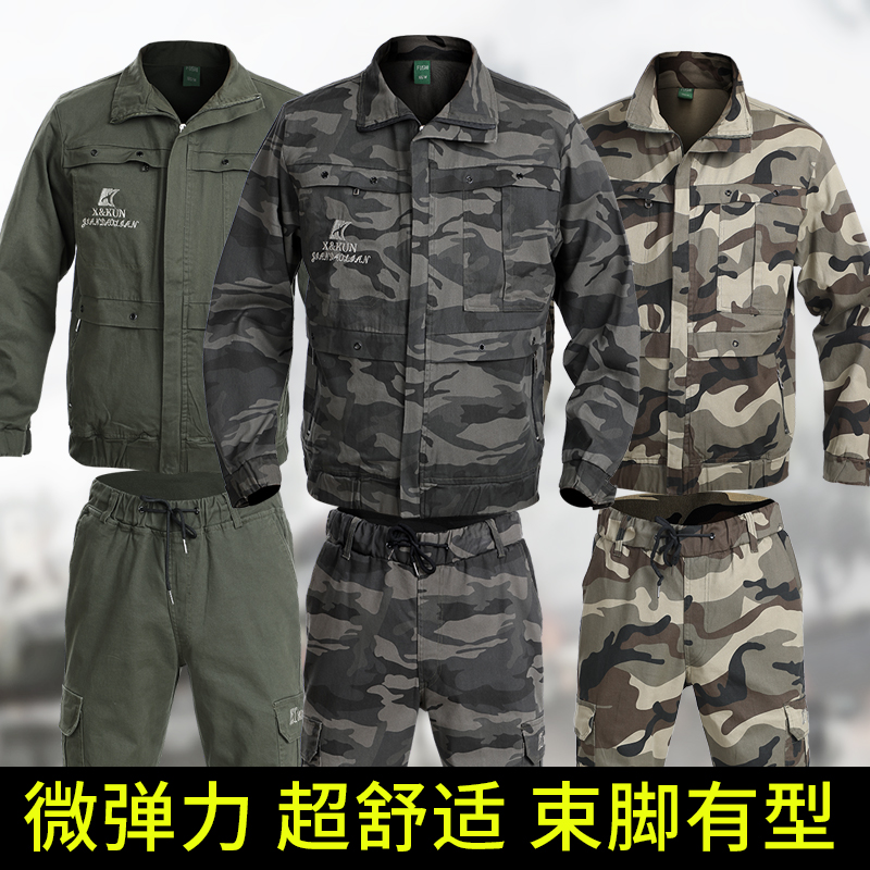 Spring and autumn wear-resistant work clothes pure cotton anti-scalding electric welding work wear wear-resistant elastic labor protection clothing camouflage suit suit male construction site