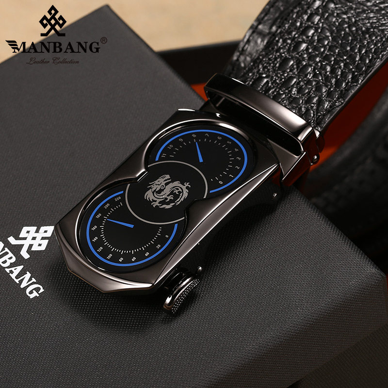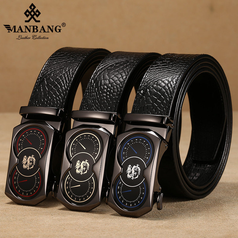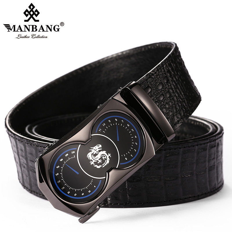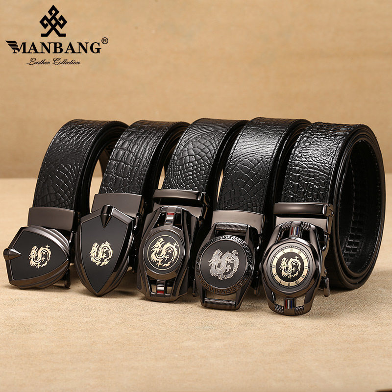 Crocodile Print Leather Strap Male Business Upscale Pure Cow Leather Leather Belt Tide Young Man Han Version Automatic Button Male Pants Strap