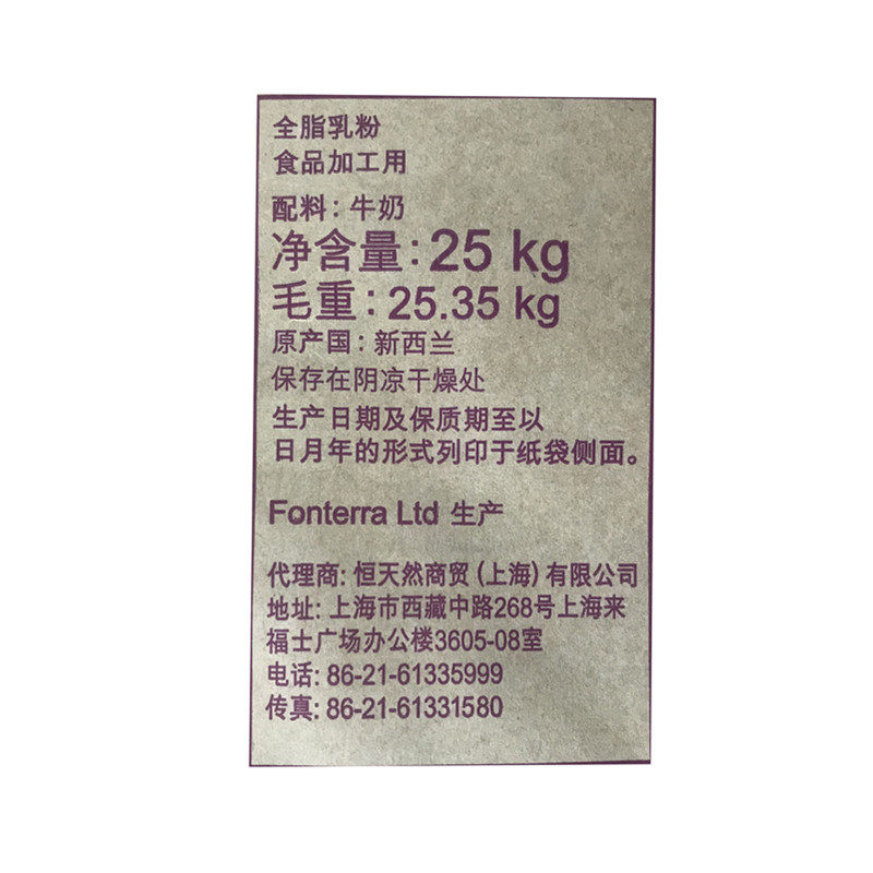 New Zealand imported Fonterra whole milk powder 25kg nougat baked yogurt spicy hot milk tea raw materials