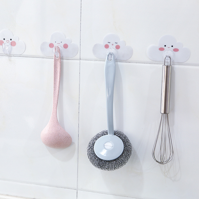 4 packs of cloud traceless strong viscose hook sticky hook personality creative door without punching hook kitchen wall hanging