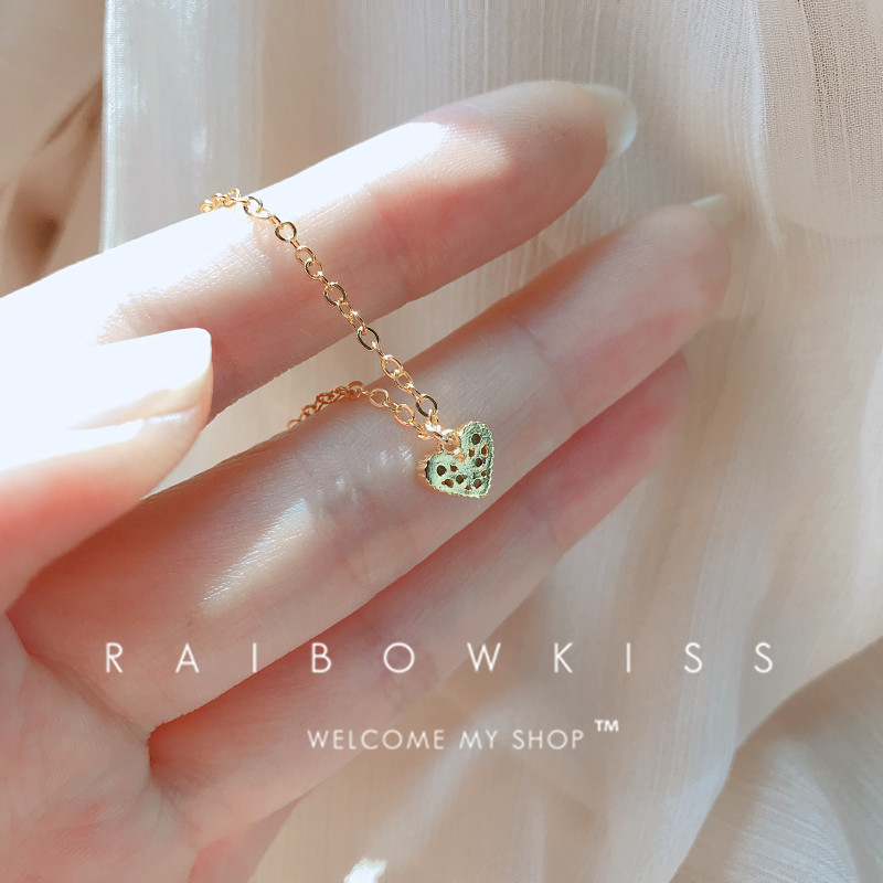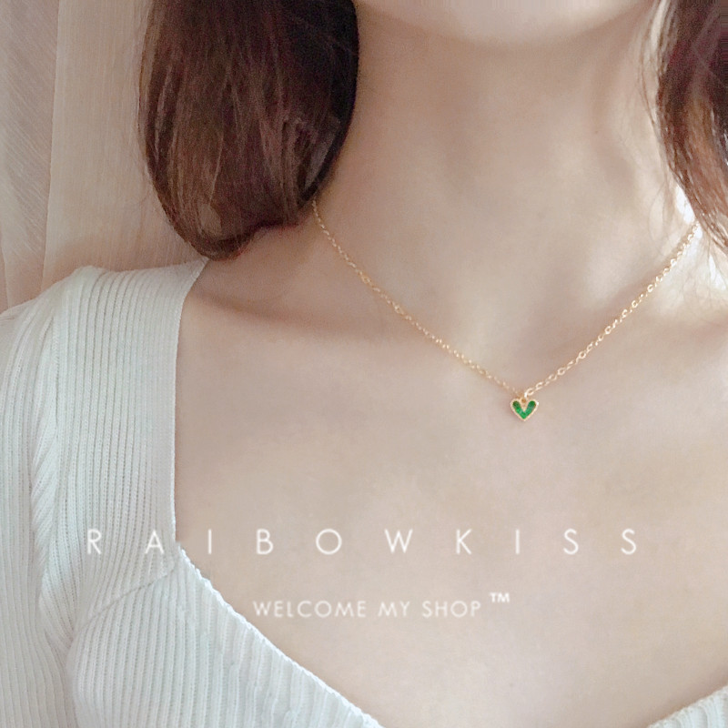 Xinmia court style revival ancient emerald love necklace 18k gold simple temperament neck chain short sweater chain