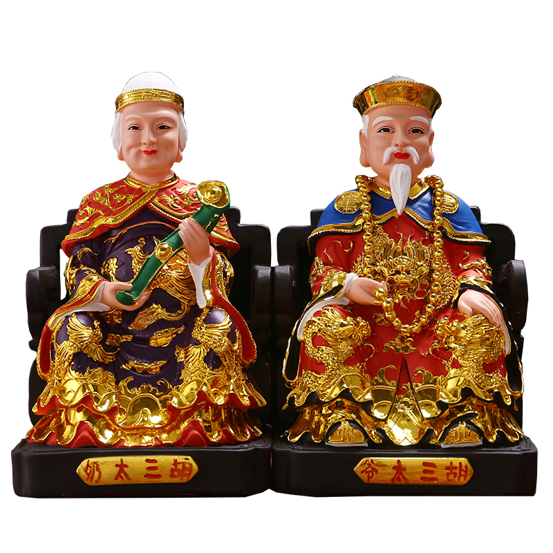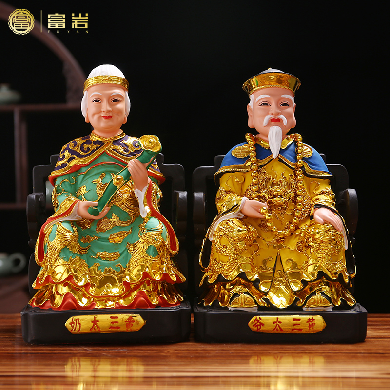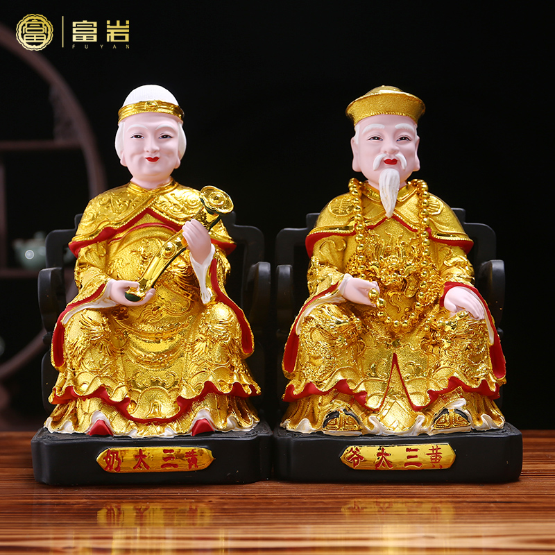 Hu San Tai's grandfather and milk god statue dedicated to household ornaments 12 inch 30cm yellow three resin fiberglass Buddha statue
