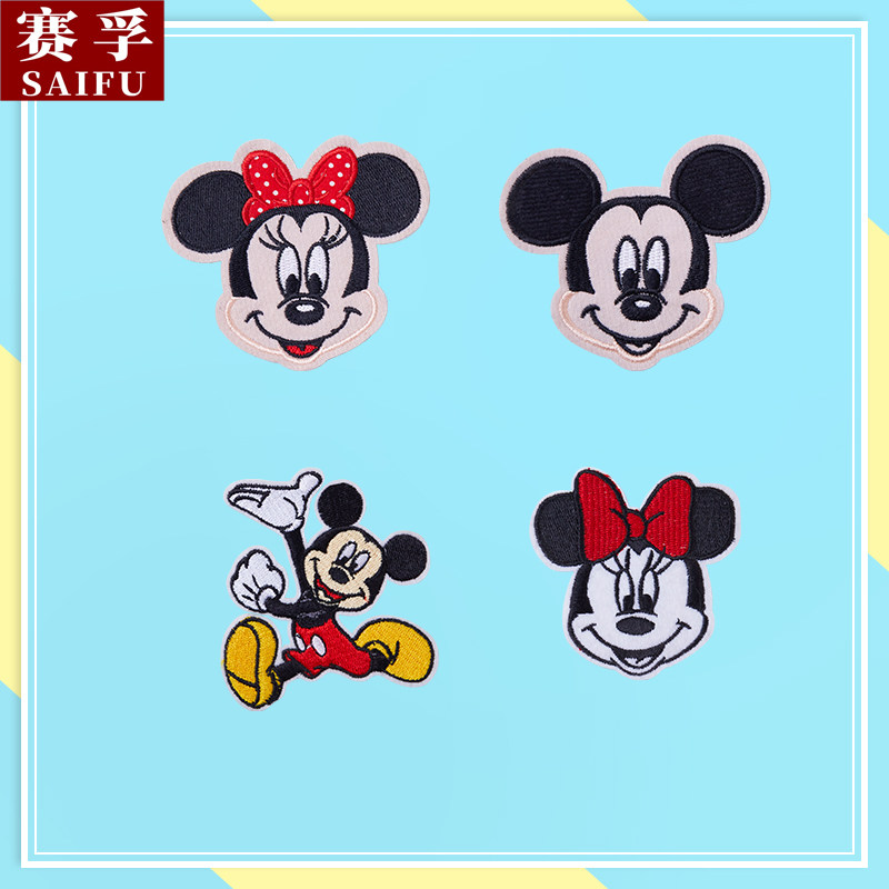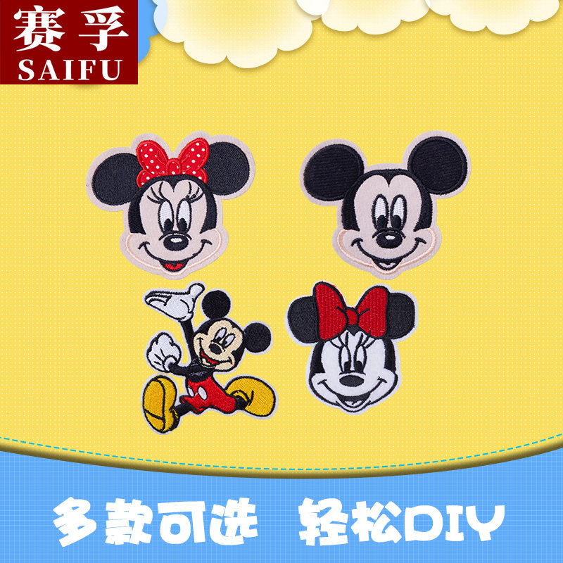 Mickey Mouse Clothes Patch Patches Cloth Stickers Iron-Free Self-Adhesive Transfer Stickers Fashion Embroidery Stickers School Bag Cartoon Cloth Stickers Pattern