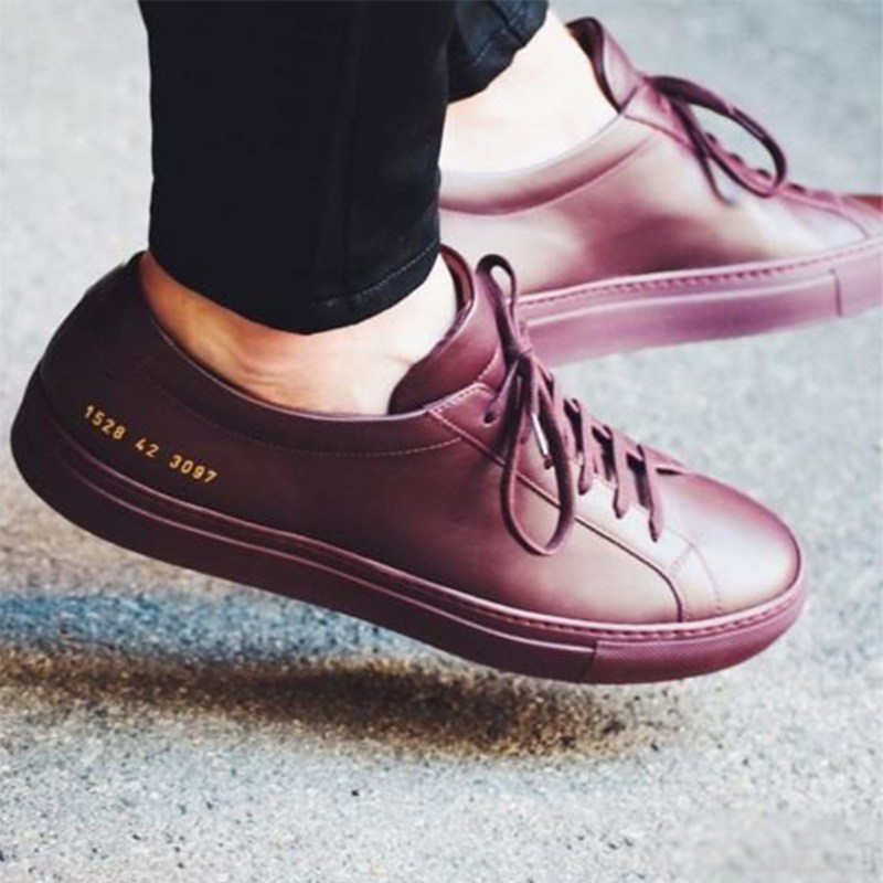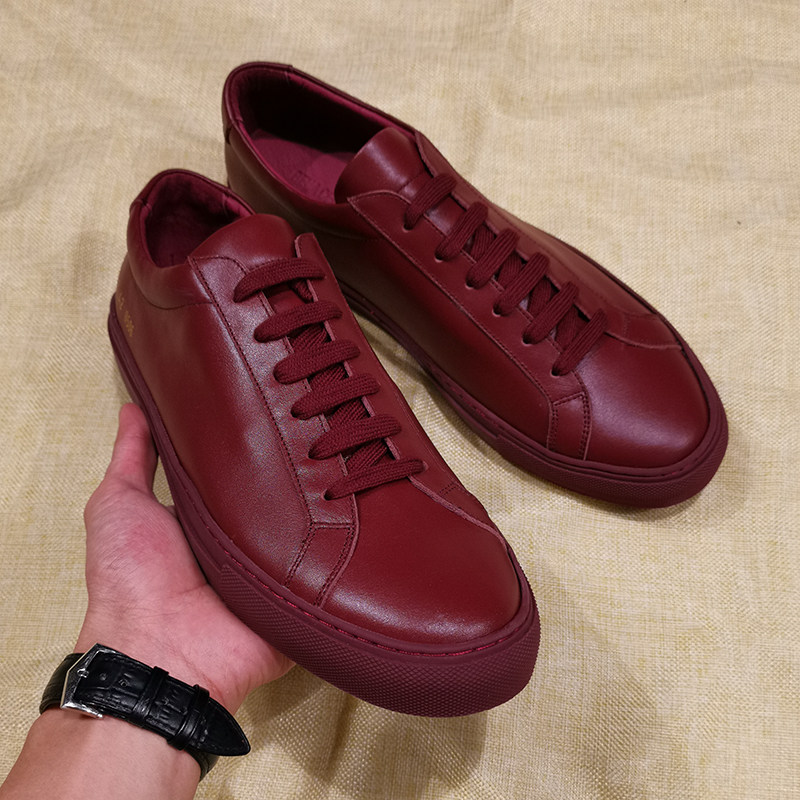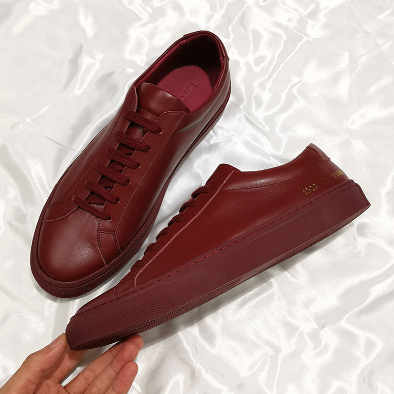 Custom Flat Head Great Uncle Common Small White Shoes Men And Women Lovers' Heads Layer Bull Leather Minimu Wine Red Color Palette Shoes-Taobao