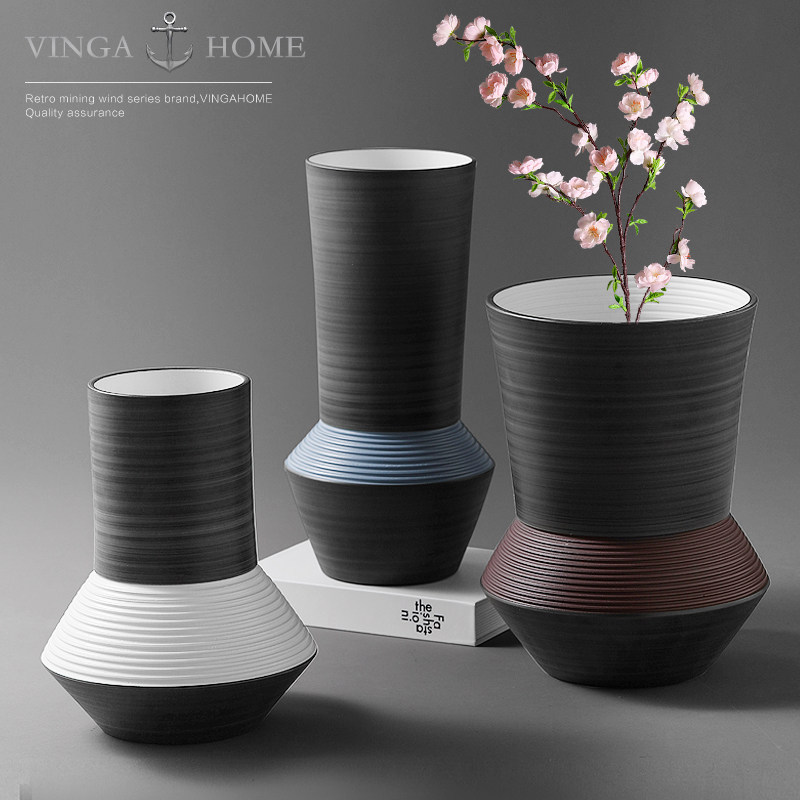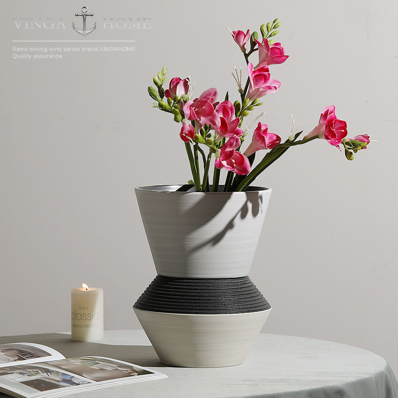 European-style modern minimalist features creative large round mouth ceramic vase living room dry flower flower arrangement decoration decoration decoration
