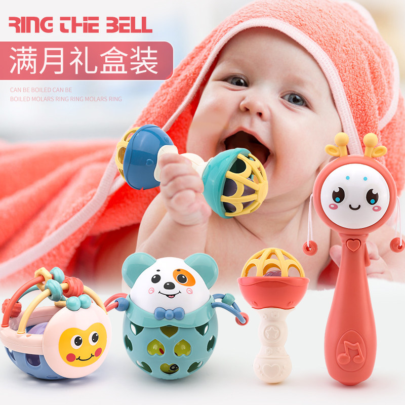 Newborn baby toy 0-1 years old bite solid tooth instrumental rocking bell 6-12 months 3 baby Early teaching puzzle male girl hand gripping