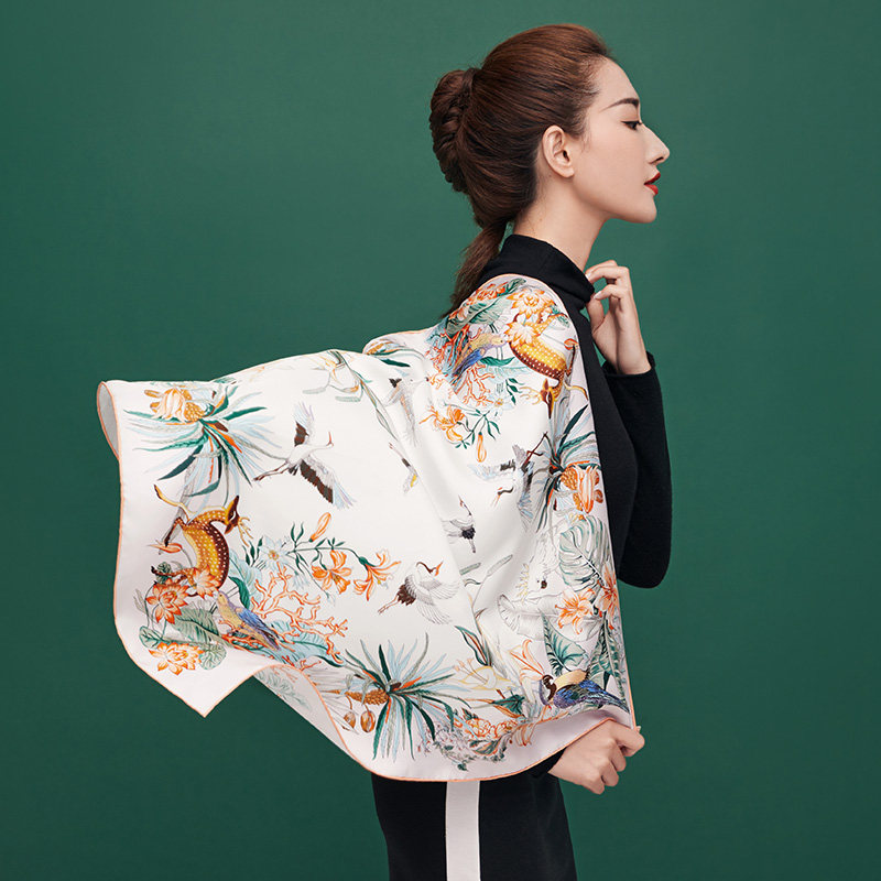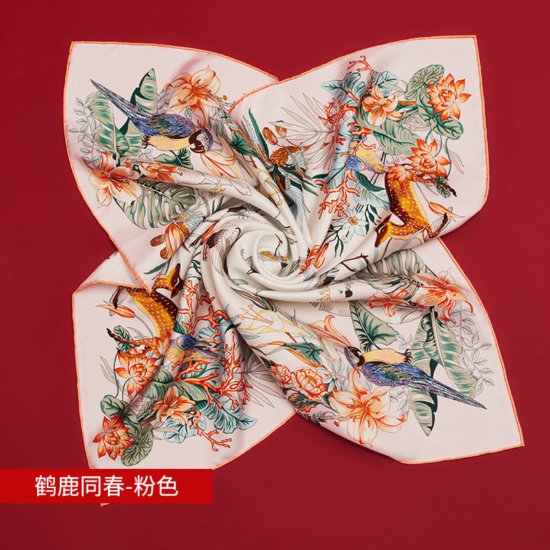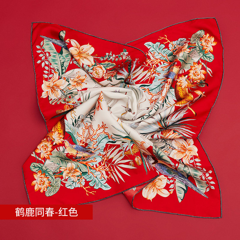 Fushou peach red-blue red (65 * 65cm) cranes Tongchun-red (65 * 65cm) with an Fenglai-emerald (65 * 65cm) Fusuo red-Sunshine Orange