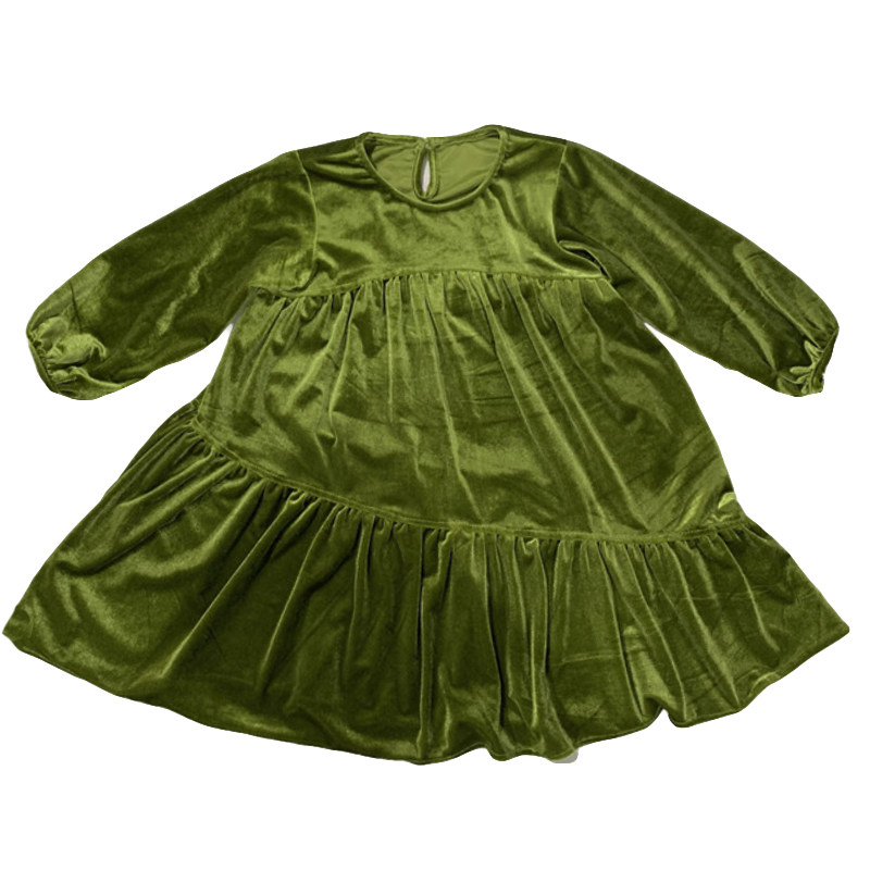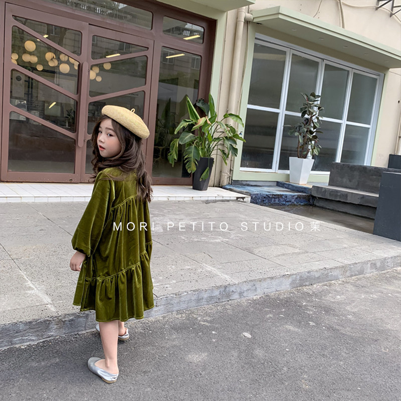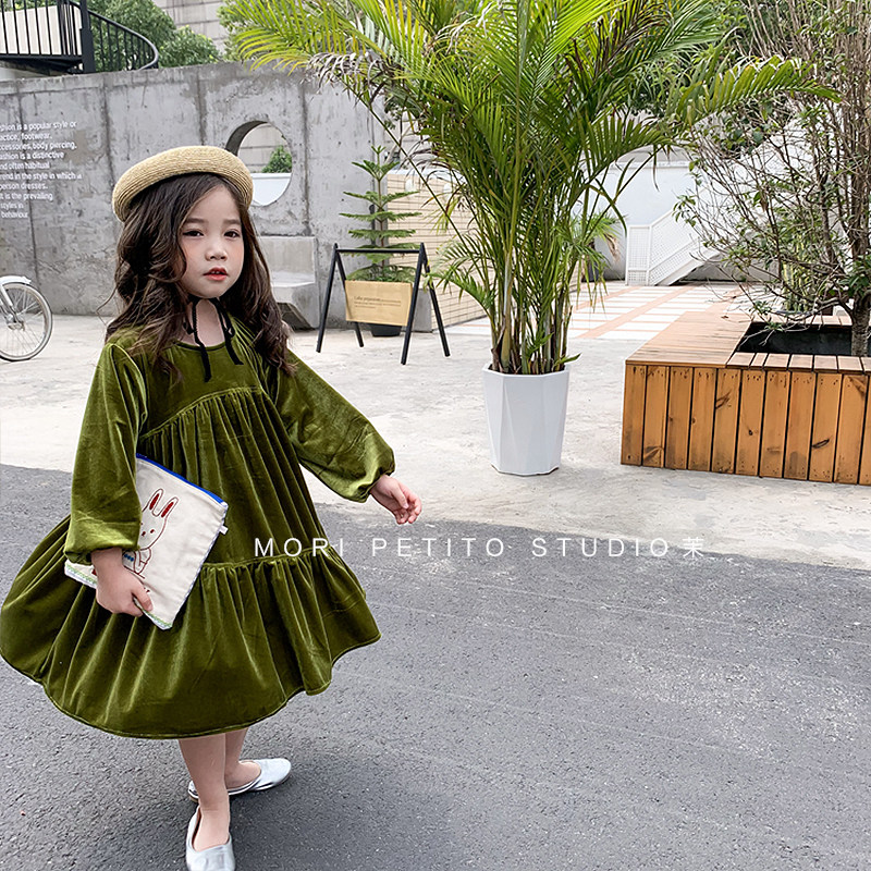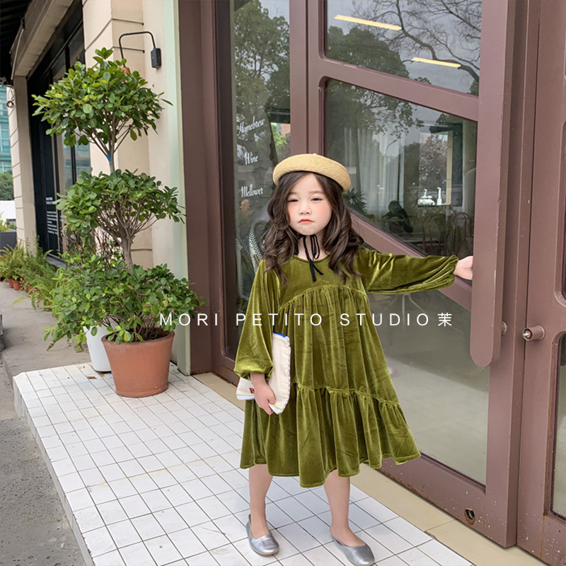 Girl Salty Vegetable Green Velvet Dress Irregular Retro Oversized Overskirt Hem Woman with a knee skirt Spring and Autumn-Taobao