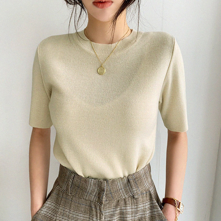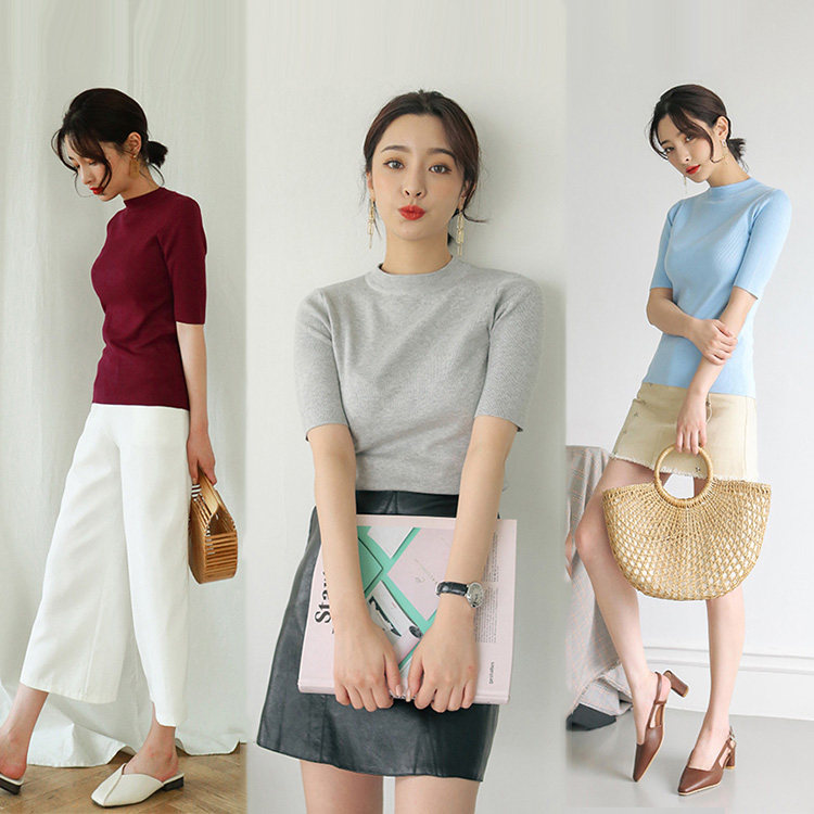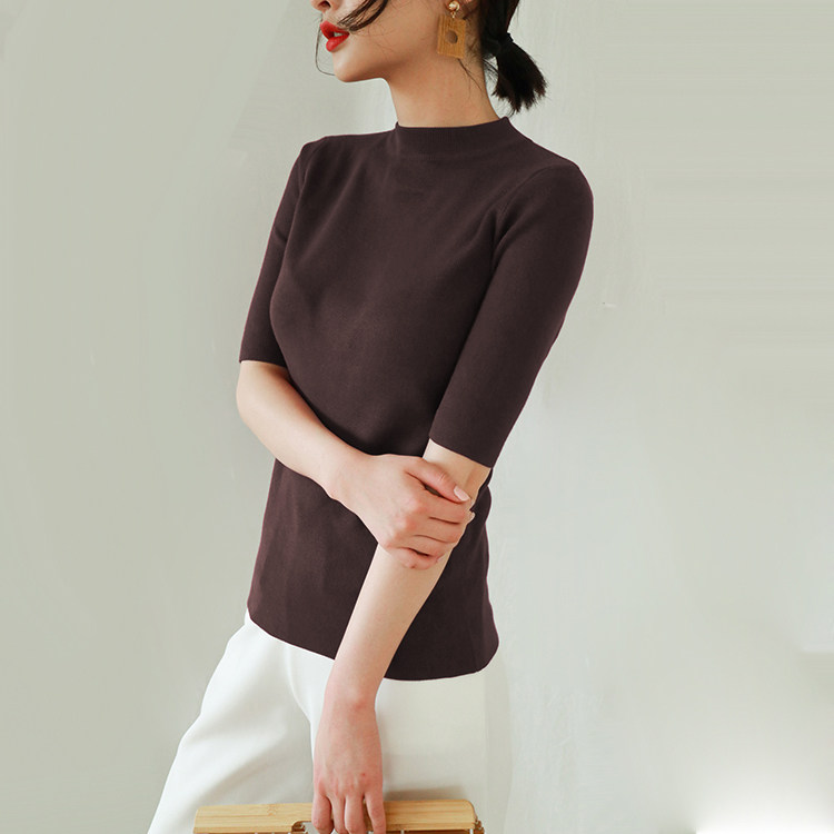 Special cabinet 2021 Spring new stitch cardiovert woman midsleeve undershirt sleeve head swarm half height collar 50% sleeve blouses