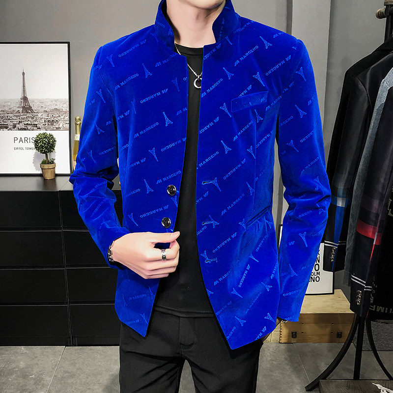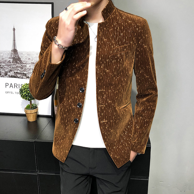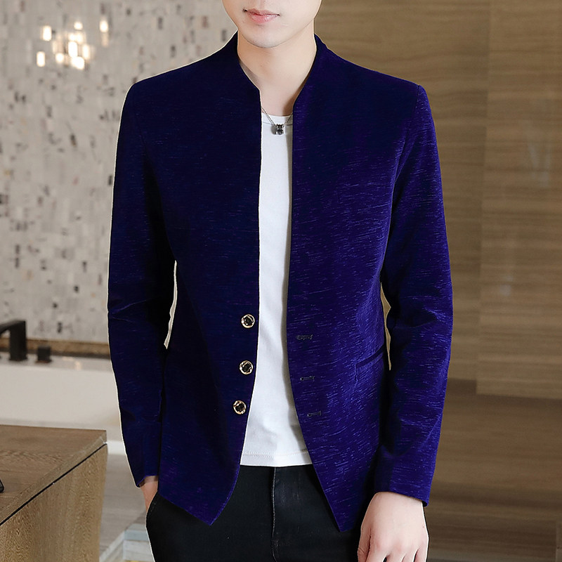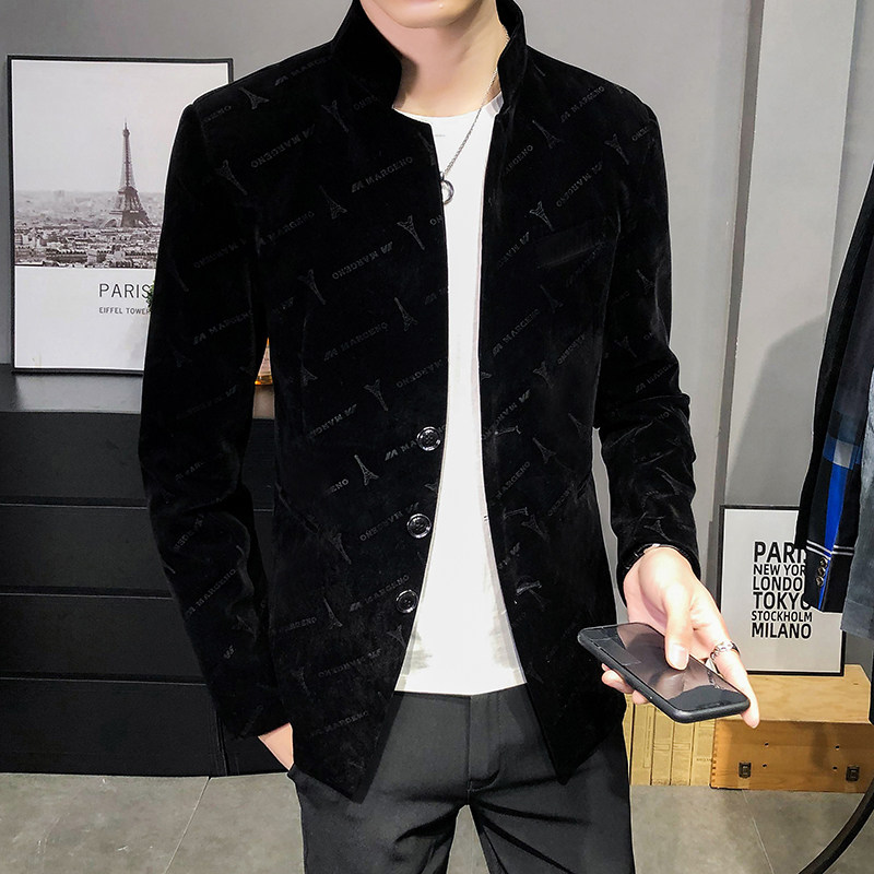 Tunic men slim Korean version casual suit jacket autumn and winter new Chinese style stand-up collar small suit men handsome
