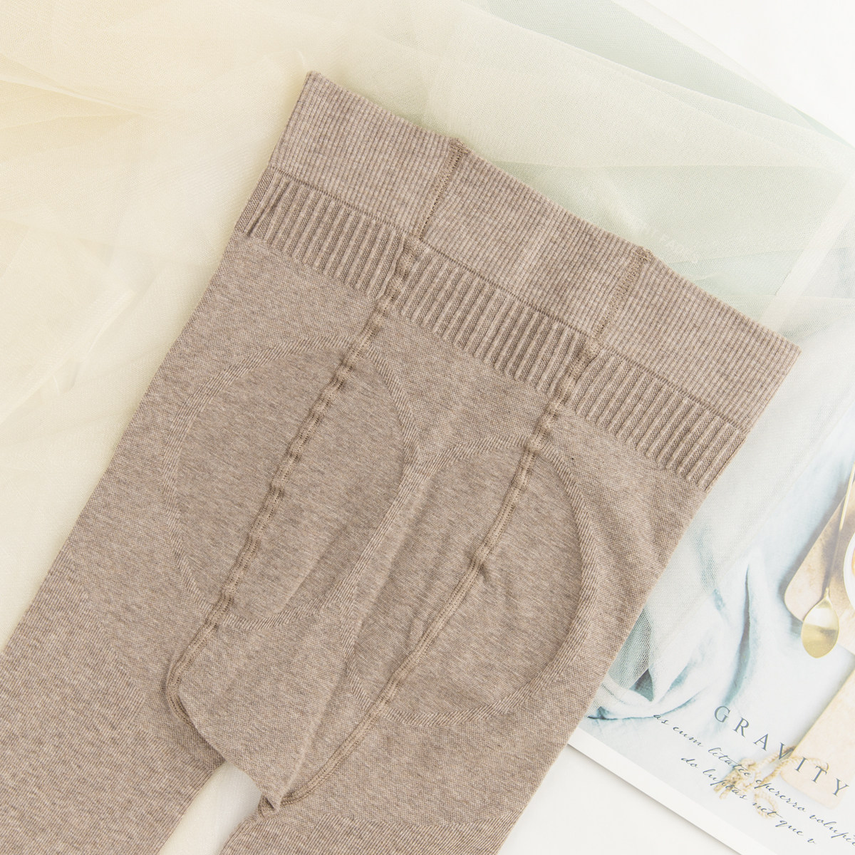 Oatmeal white pantyhose autumn and winter micro-pressure thickening plus velvet vertical stripes show thin net red milk coffee hemp gray stepping on the foot