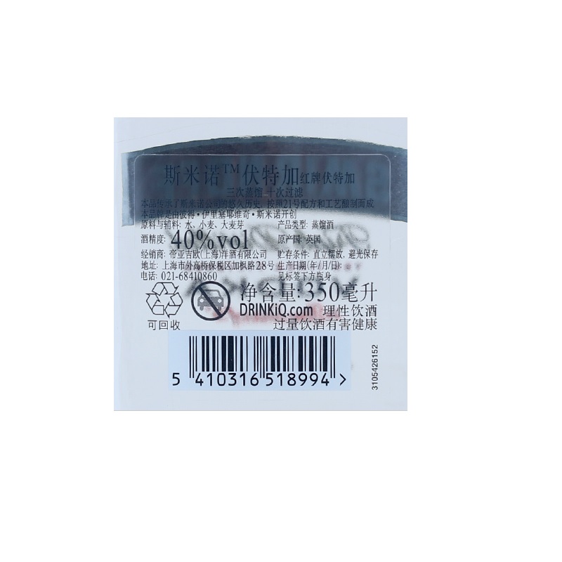 Smino red card vodka 350ml carry-on SMIRNOFF VODKA UK original imported foreign wine
