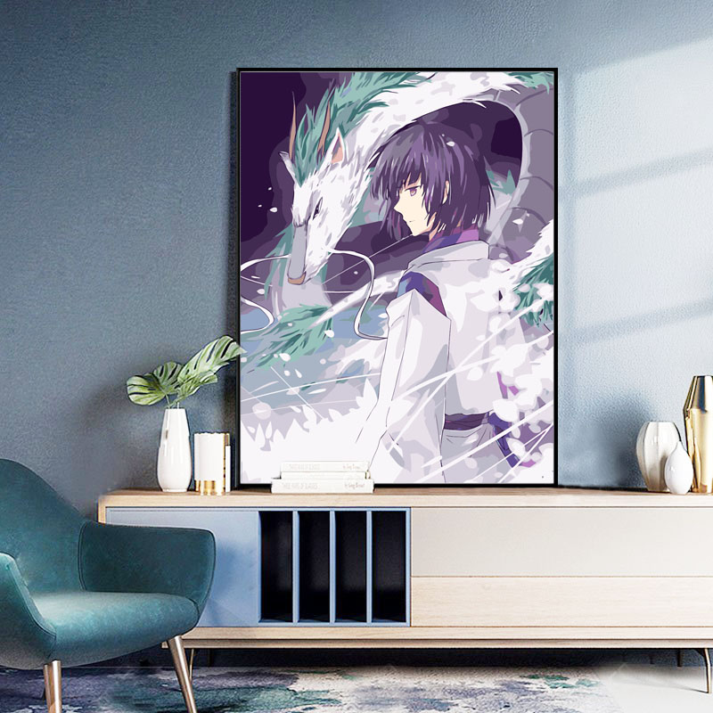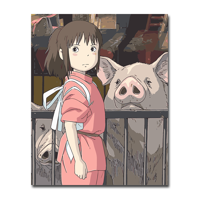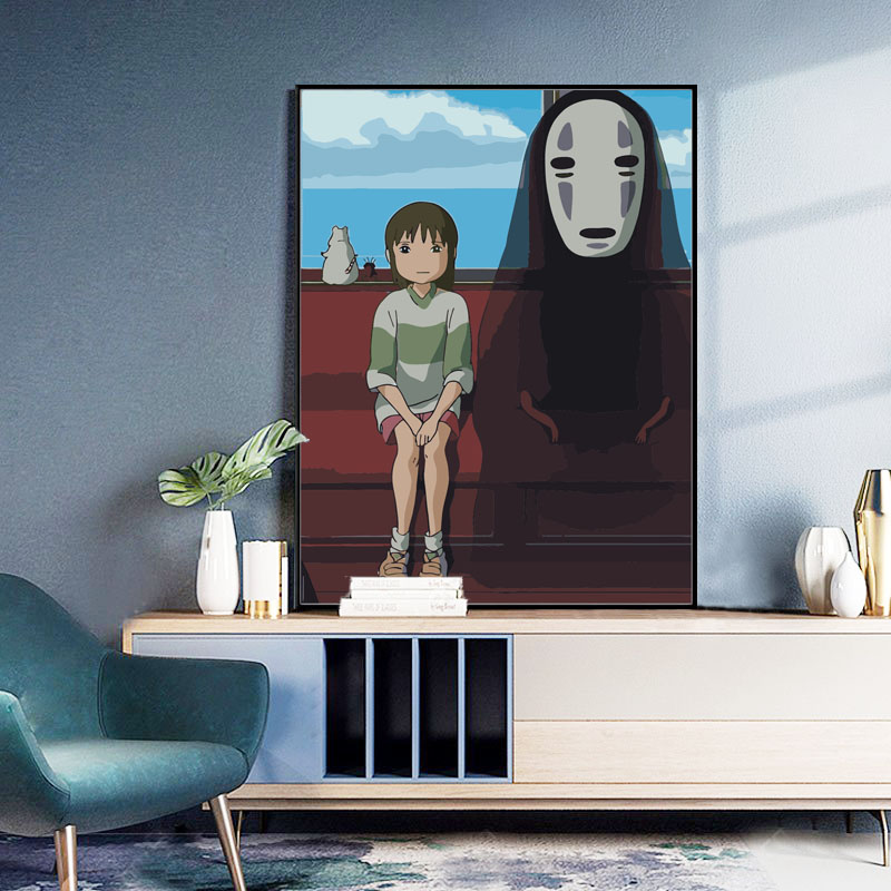 diy digital oil color painting Miyazaki and thousands of found cartoon cartoon crossfill color painting hand-painted decorated oil painting decoration painting