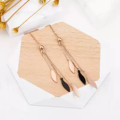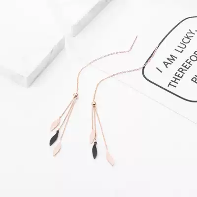Temperament show face thin ear refining female Net red 2020 New leaf earrings ear refining long version of High Extreme sense earrings ear pin