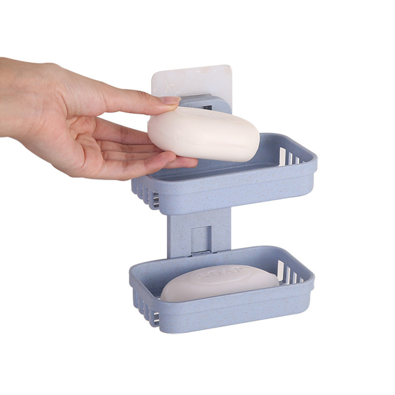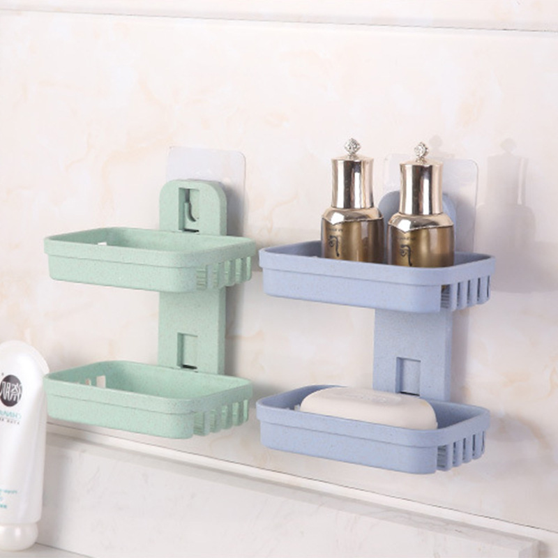 Suction wall double soap rack bathroom drain soap box strong suction cup soap rack wall hanging rack