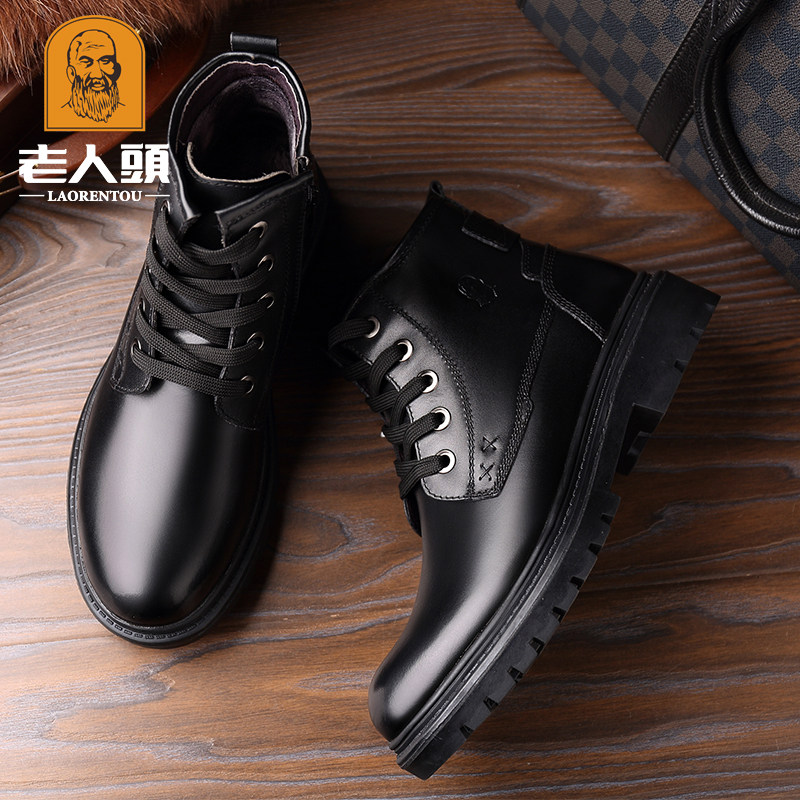 Old man's head Martin boots men's 2021 new snow boots winter warm plus velvet leather wool high-top tooling boots