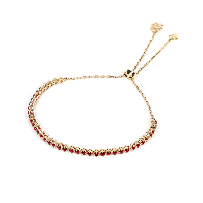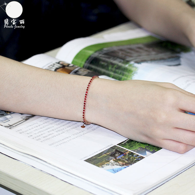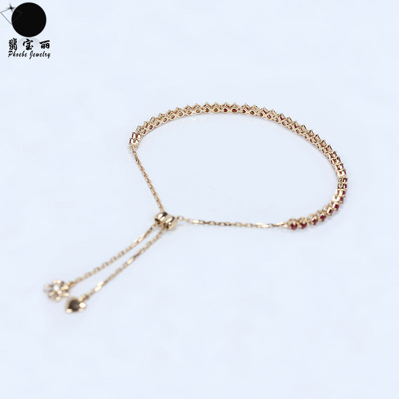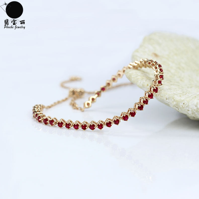 18K rose gold natural pigeon blood ruby double-strand retractable hand full circle dark red diamond bracelet for women