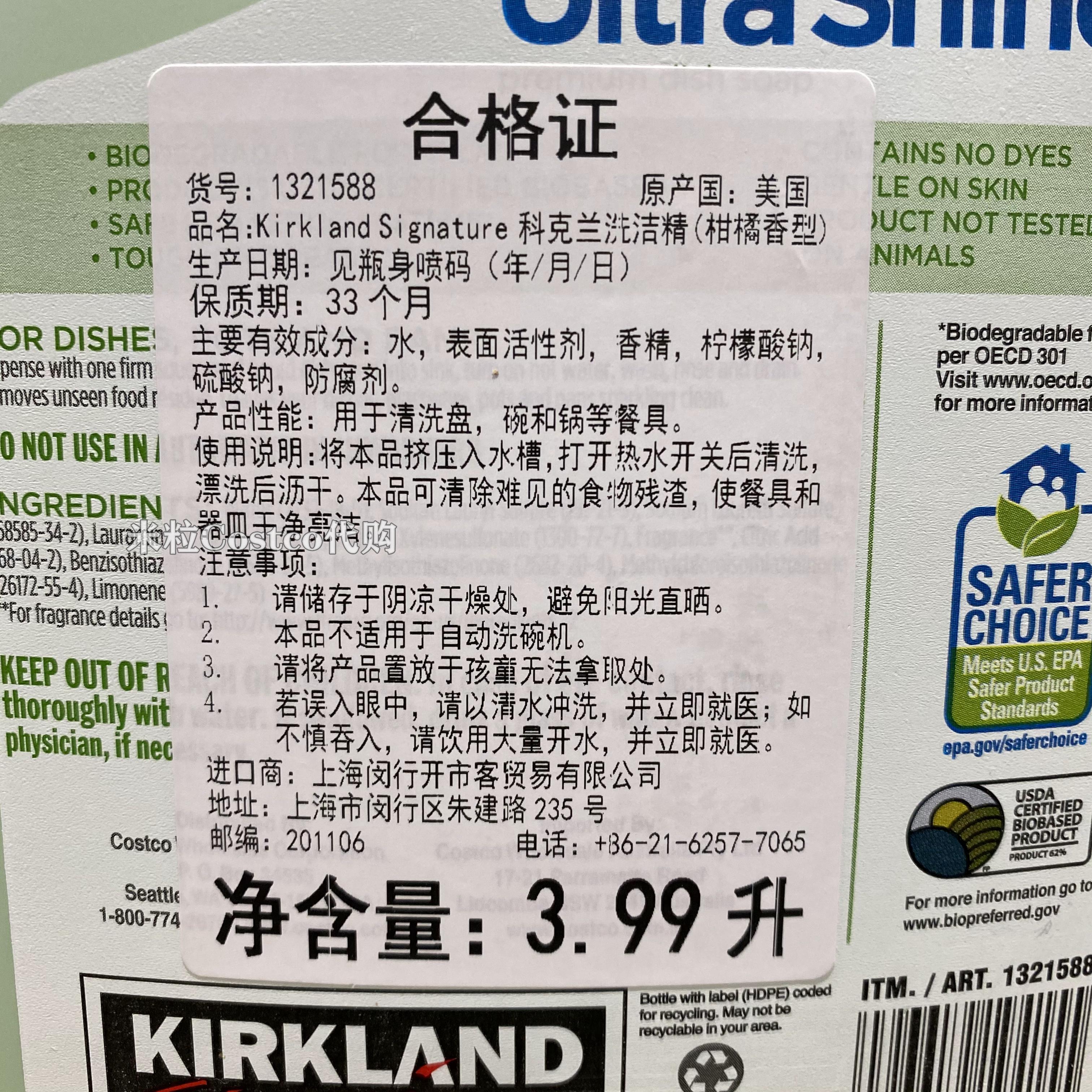 Shanghai costco open city guest US imports KIRKLAND Kokland wash and finish 3 99L