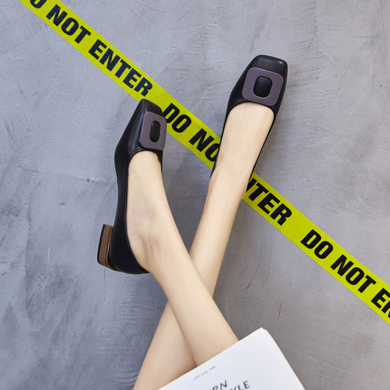 Tide card 2022 spring new bag shoes women genuine leather coarse heel Korean version shallow square head low heel sleeve foot 100 lap grandma shoes