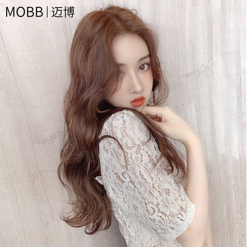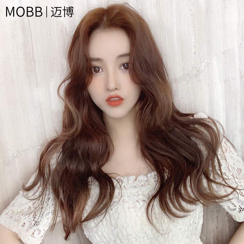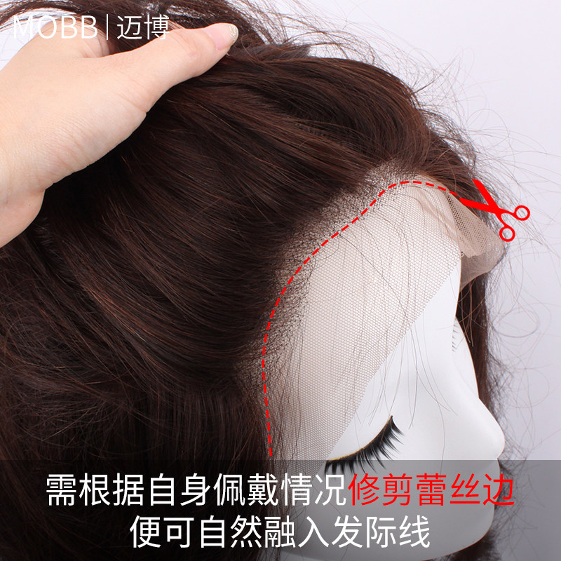 Wig Women's long hair French style Eight words Long sea length curly hair large wave fluffy natural lace live-action hair headgear