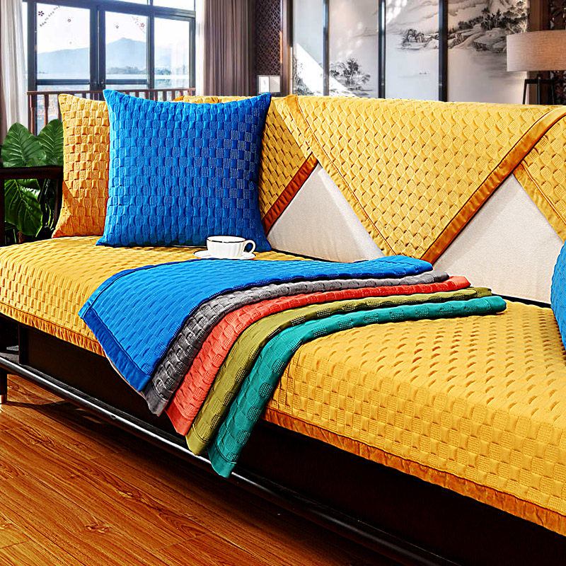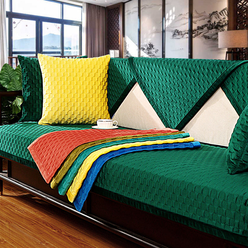 Light luxury sofa cushion four seasons universal new Chinese style solid wood non-slip winter plush cushion simple modern cover towel