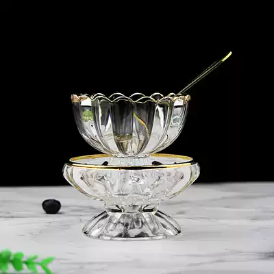 Japanese-style gold-edged glass ice cream cup ice cream cup high-footed glass smoothie cup yogurt dessert Cup snack dish