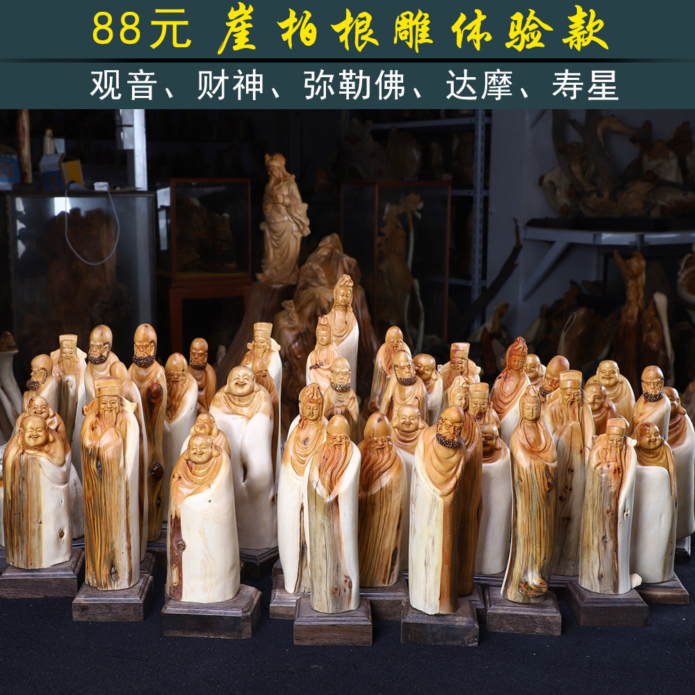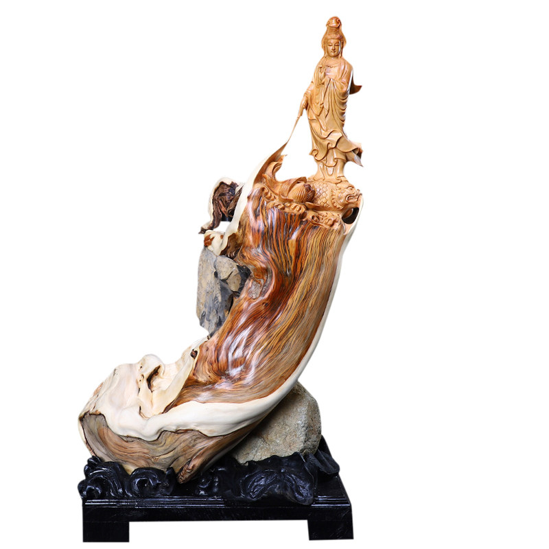 Taihang cliff cypress ornaments root carvings natural tree roots wood carvings Craft gifts ornaments carved handle pieces Guanyin Buddha Statues Landscape flowers and birds