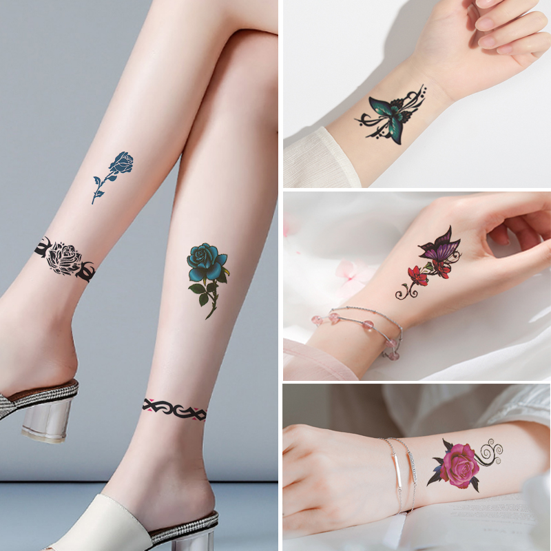 Tattoo Stickers Waterproof Men and Women Persistent Korean Xiaoqing Netred Butterfly Ankle Clock in Wind Stickers