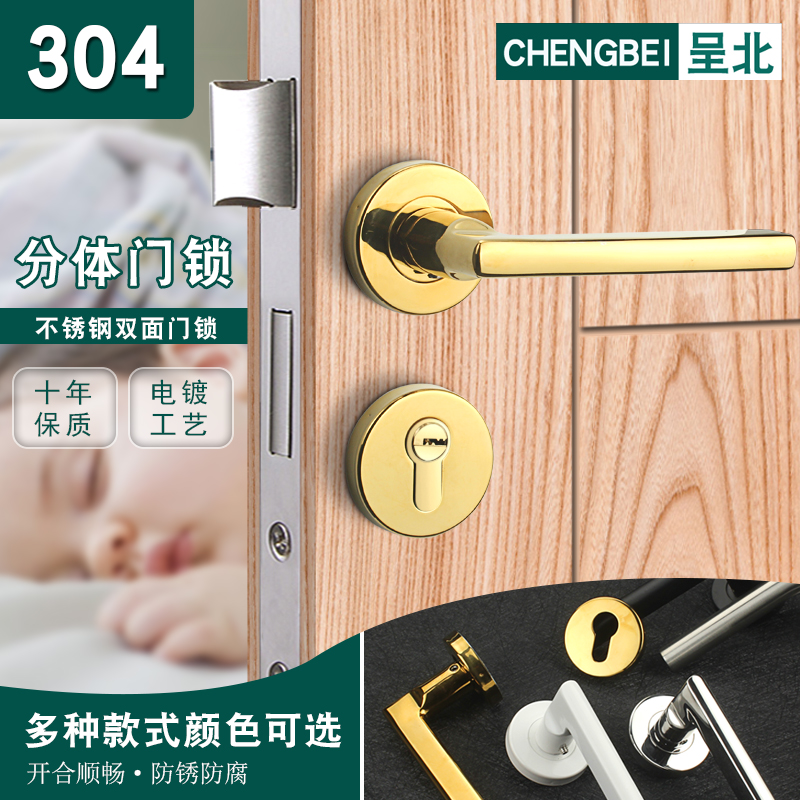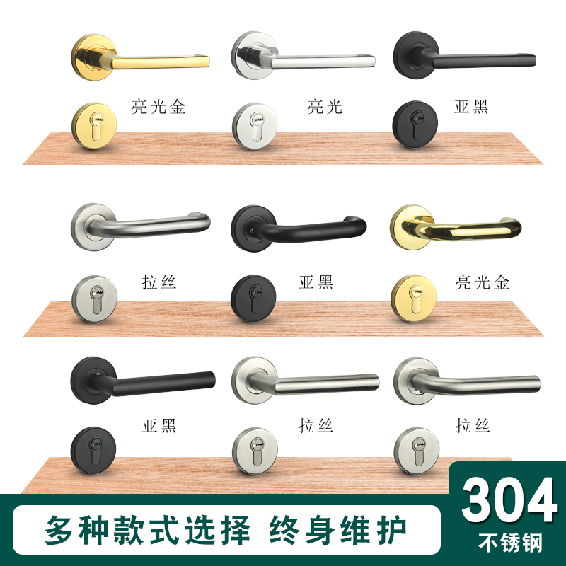 304 stainless steel room door lock bedroom door wooden door split lock toilet mute lock room door handle handle-Taobao