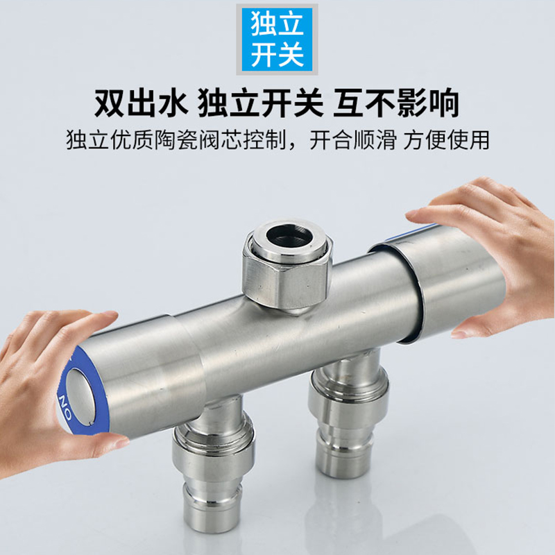 304 One-in-two-out three-way triangle valve shunt water separator One-in-two-out double outlet washing machine faucet special